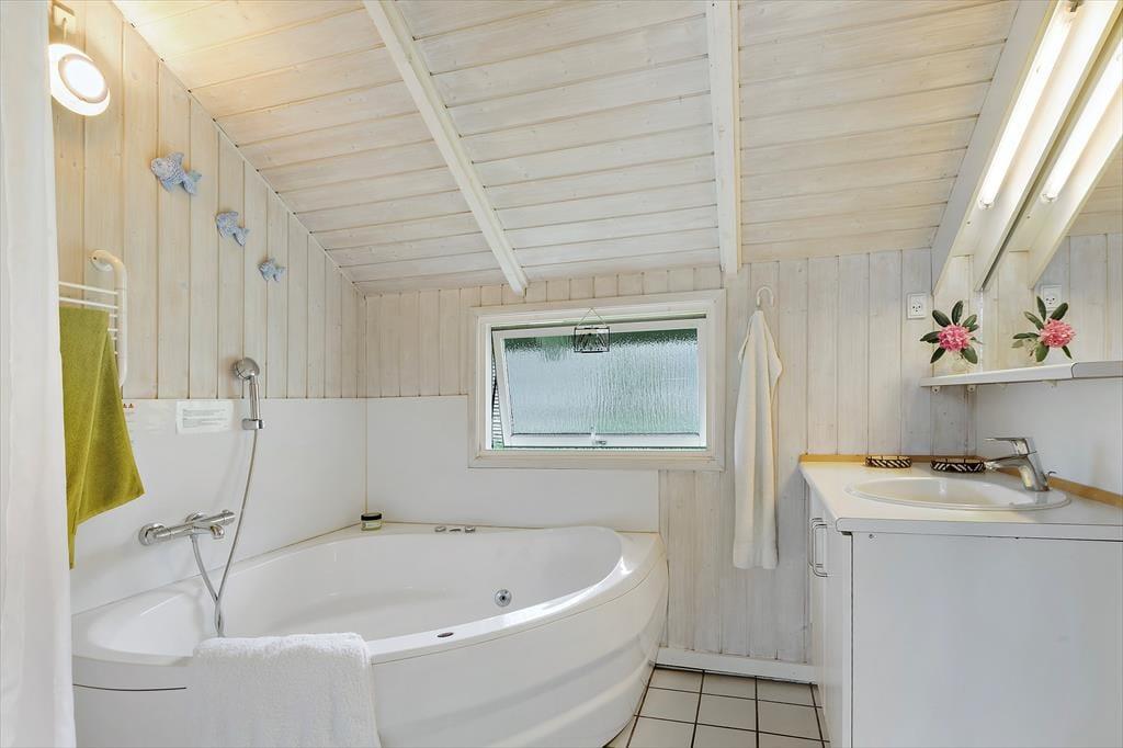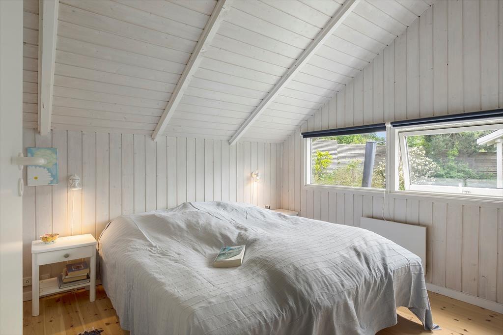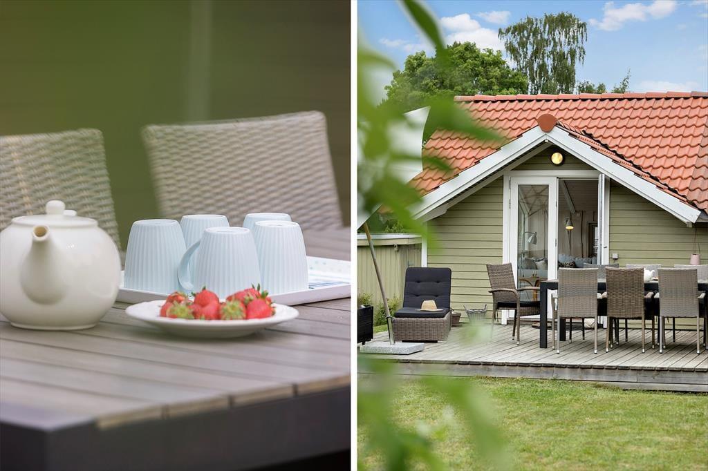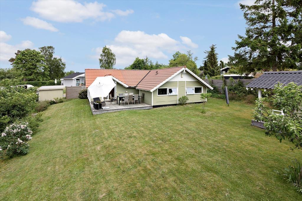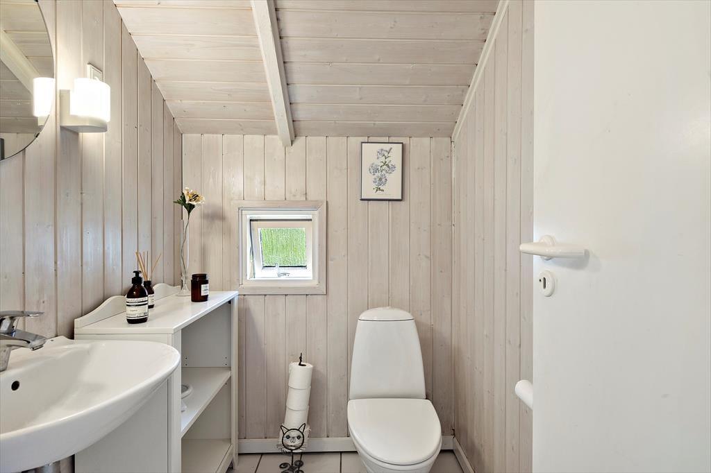 Udenfor byder sommerhuset på en dejlig have og en solrig terrasse, der indbyder til afslapning dagen lang. Her kan du begynde morgenen med en kop kaffe under de første solstråler, nyde eftermiddagens fuglesang eller samle familien til grillmiddag, når aftenen falder på. Haven er et skønt sted for både leg og afslapning – omgivet af grønne træer, der skaber en naturlig ramme om ferielivet. Når mørket sænker sig, er det oplagt at blive siddende ude og betragte den stjerneklare himmel, mens du mærker roen brede sig.
