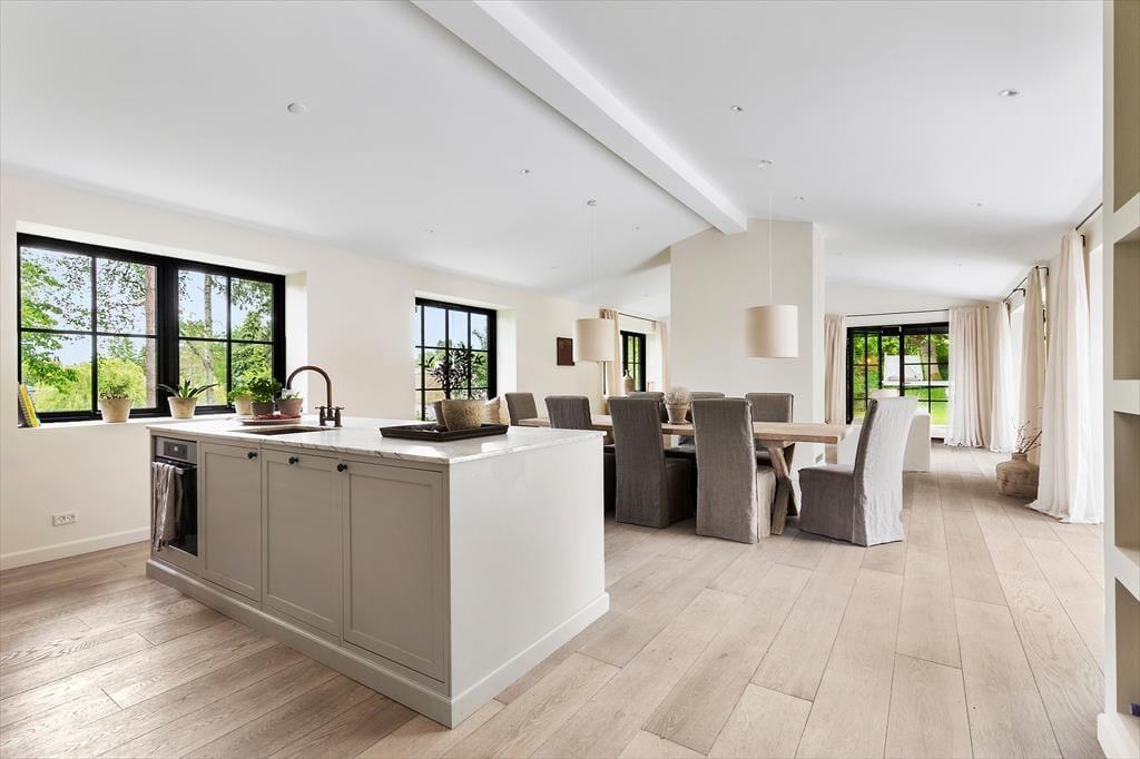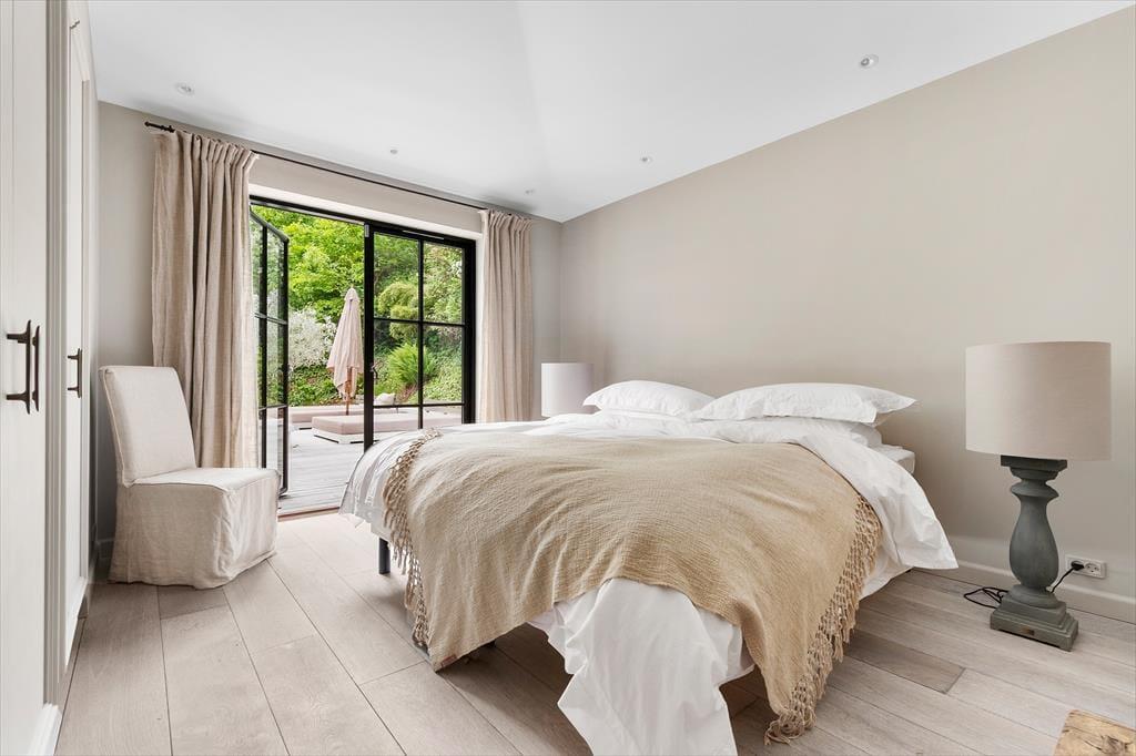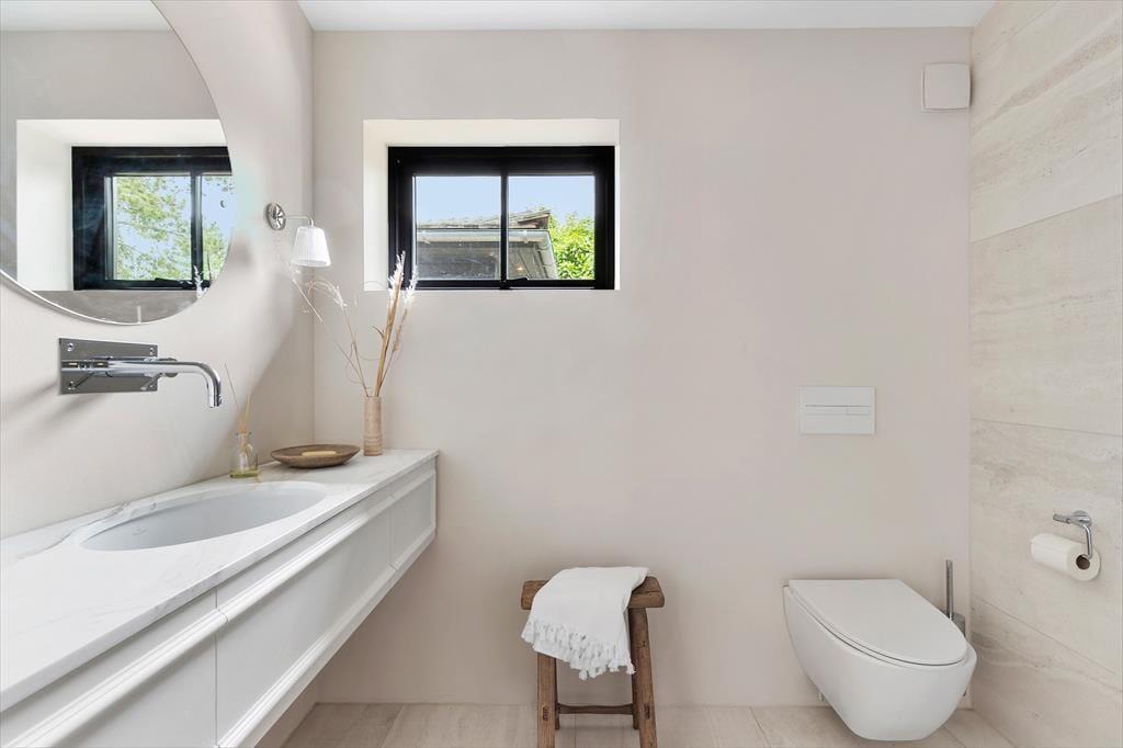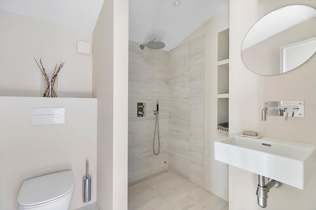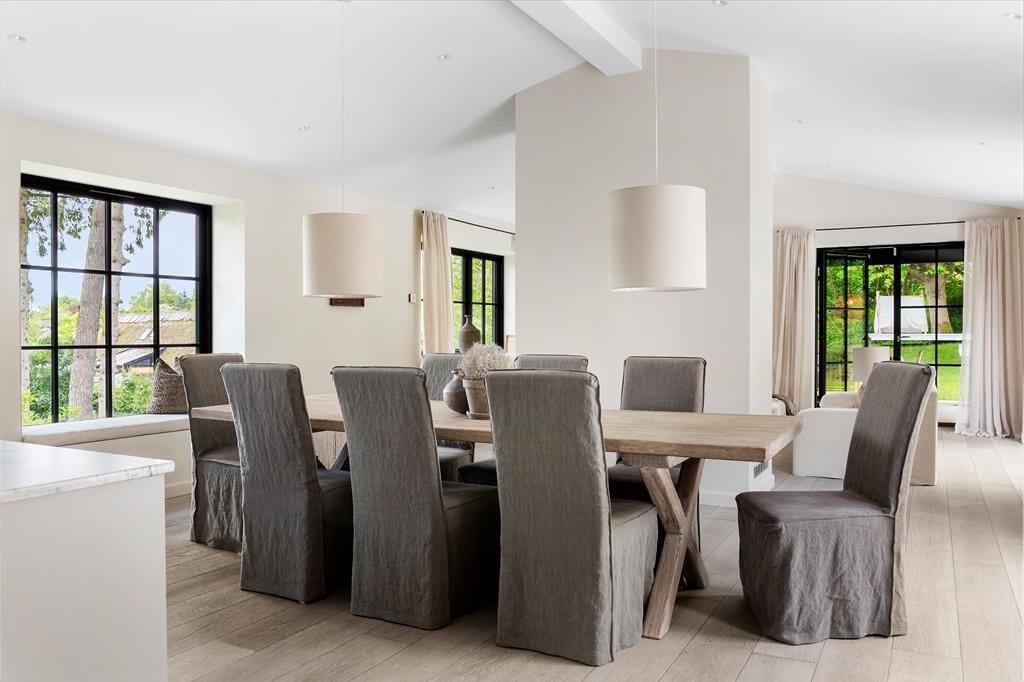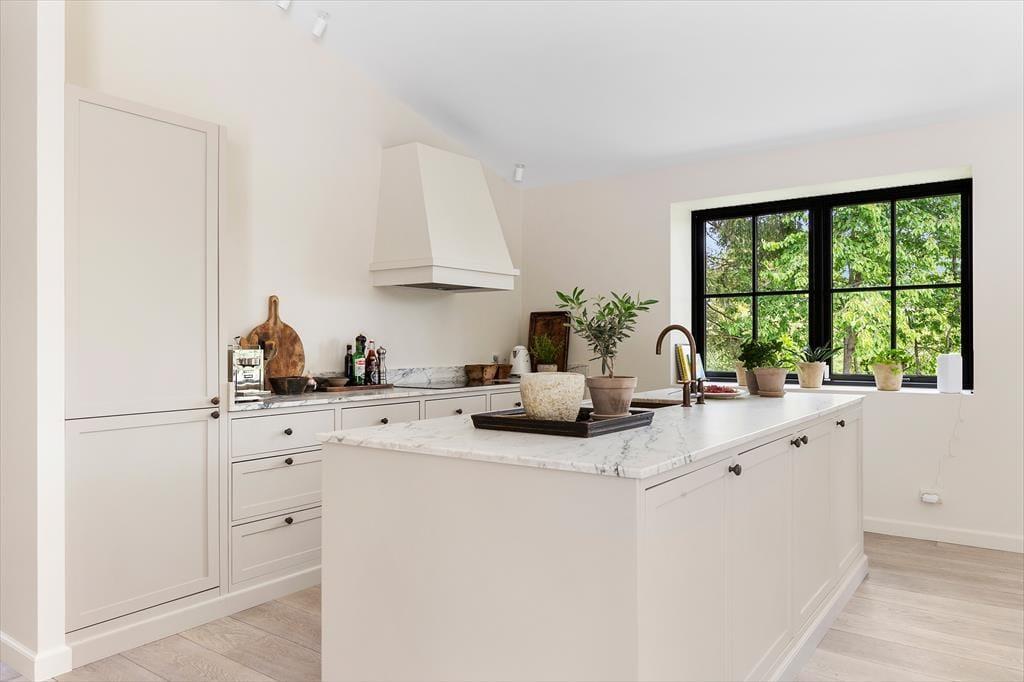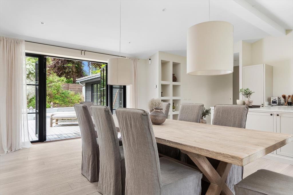 Indretningen er gennemtænkt til mindste detalje med et skarpt blik for æstetik og komfort. Her er eksklusive gulve, smukke fliser, luksuriøse hårde hvidevarer og gardiner, der tilfører hver eneste krog et raffineret præg. Store vinduespartier og et naturligt lysindfald skaber en let og indbydende stemning, hvor der er lige så meget fokus på funktionalitet som på atmosfære.
