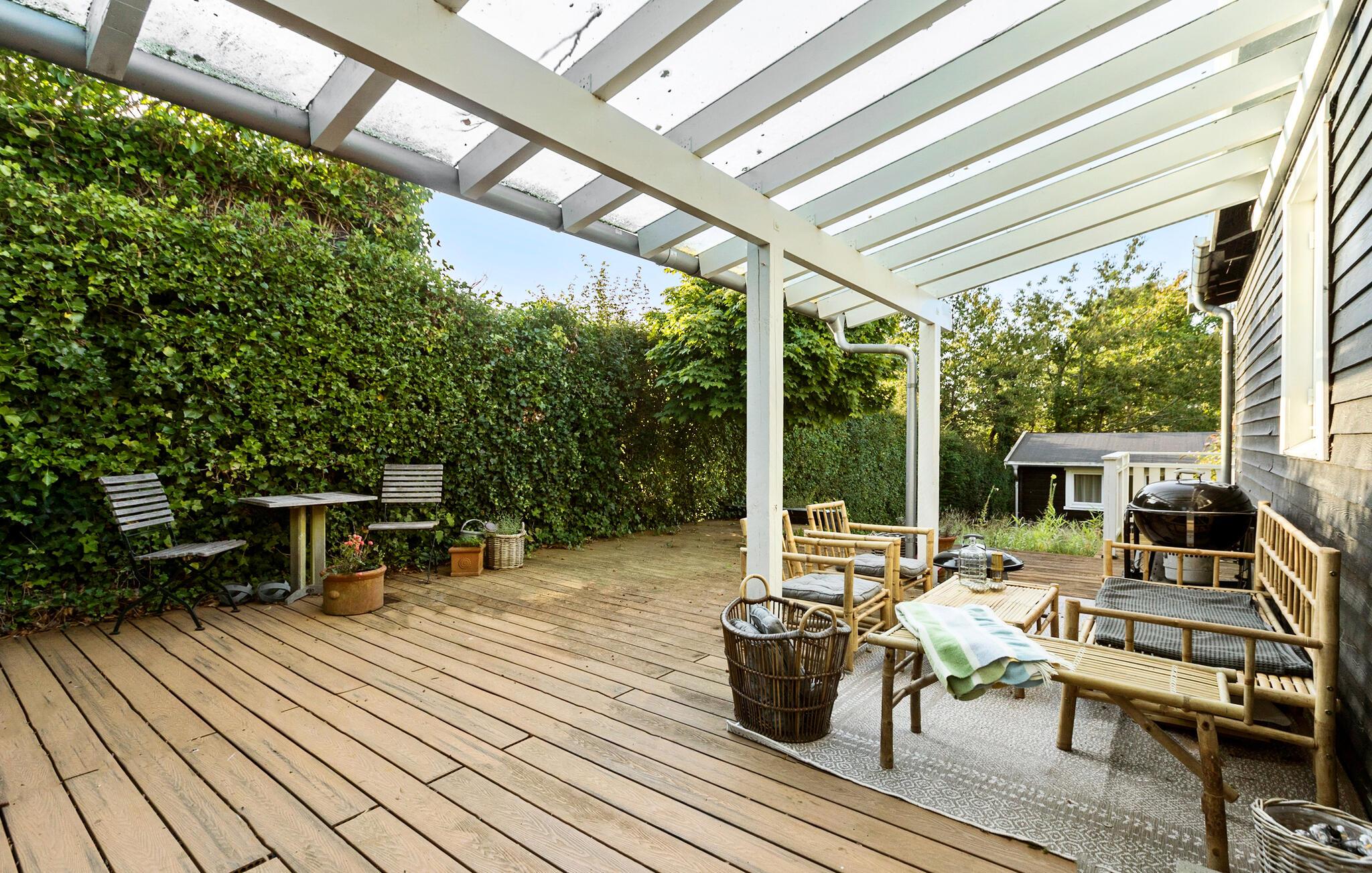 Til huset hører flere terrasser, så I kan finde sol, skygge og læ efter behov på de varme dage. Begynd dagen med en god kop kaffe i det fri, nyd solen i mange timer og tænd op i grillen, når aftensolen sig nærmer.
