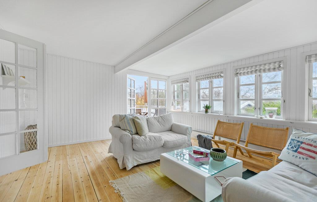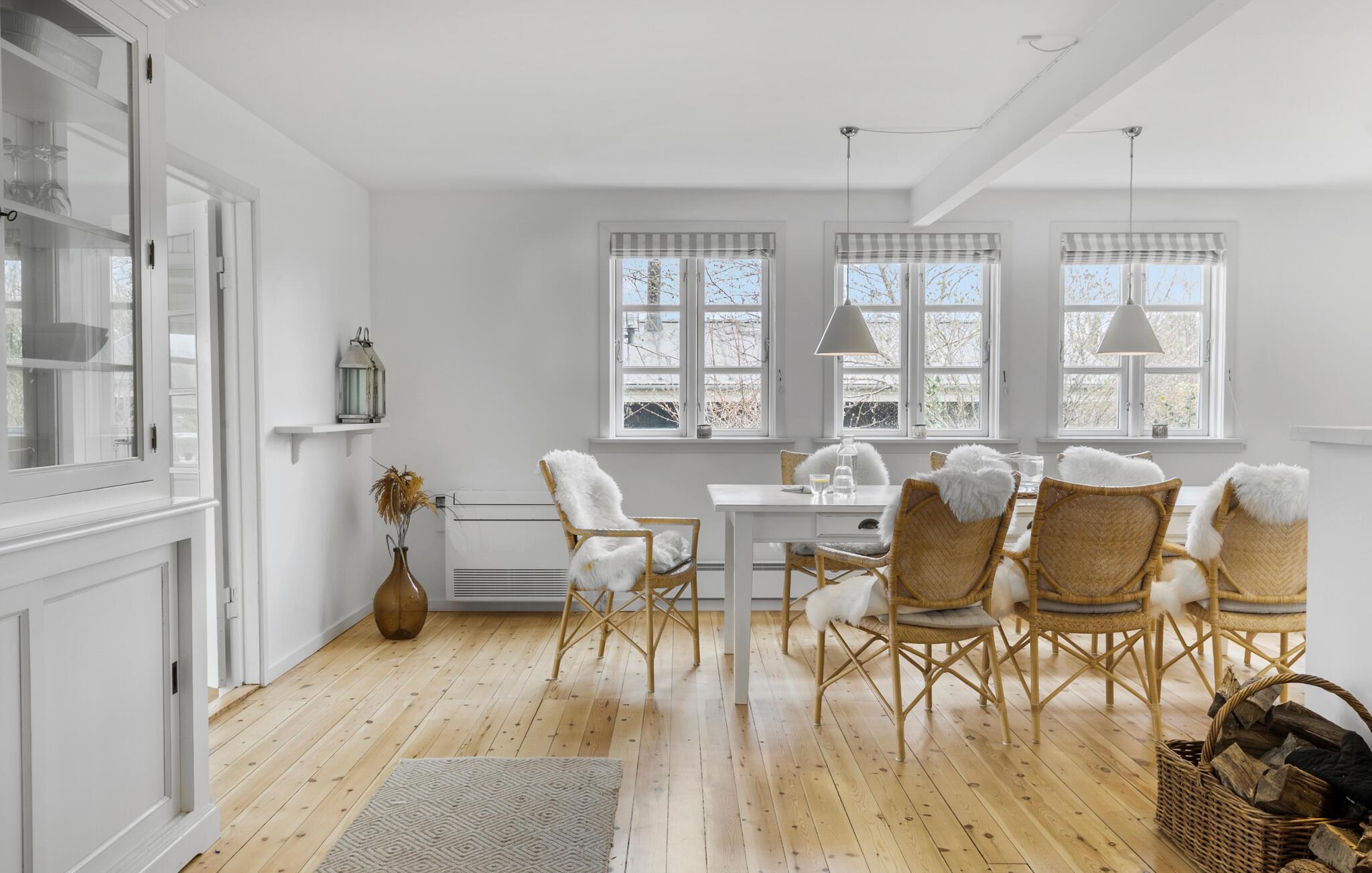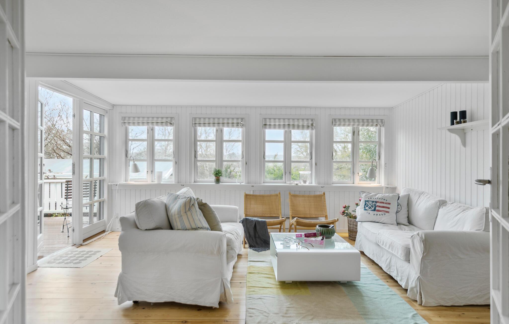 Tag familien under armen og rejs til Hornbæk, hvor I en kilometers penge fra stranden får en skøn base i dette charmerende træhus. Udover hovedhuset er her også et anneks, så det er en ideel destination for jer, der gerne vil kunne trække jer lidt tilbage til privaten fra tid til anden. Huset er nydeligt indrettet. Dagslyset siver ind fra forskellige sider gennem de mange vinduespartier, og der er flere gode hjørner og kroge, hvor I kan læse en god bog, mens ilden knitrer i brændeovnen. Køkkenet er ganske stort, så madlavningen kan gøres til et sjovt fællesprojekt, inden aftenen går på hæld med snacks og brætspil eller en god film i sofaen.