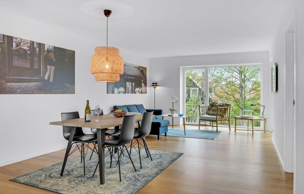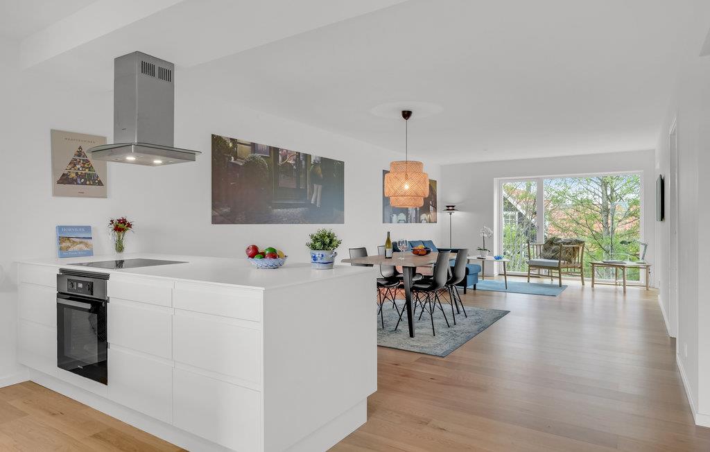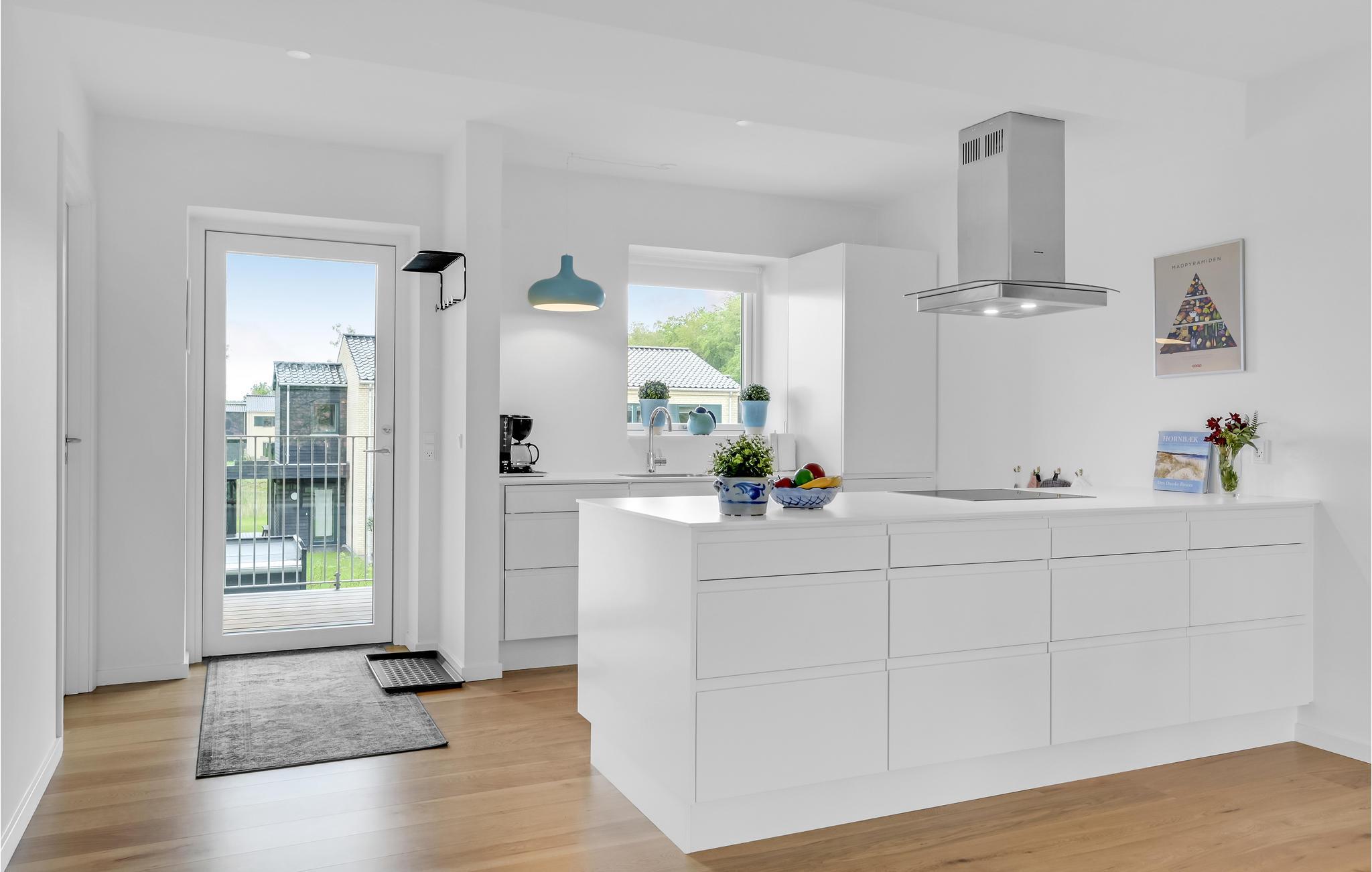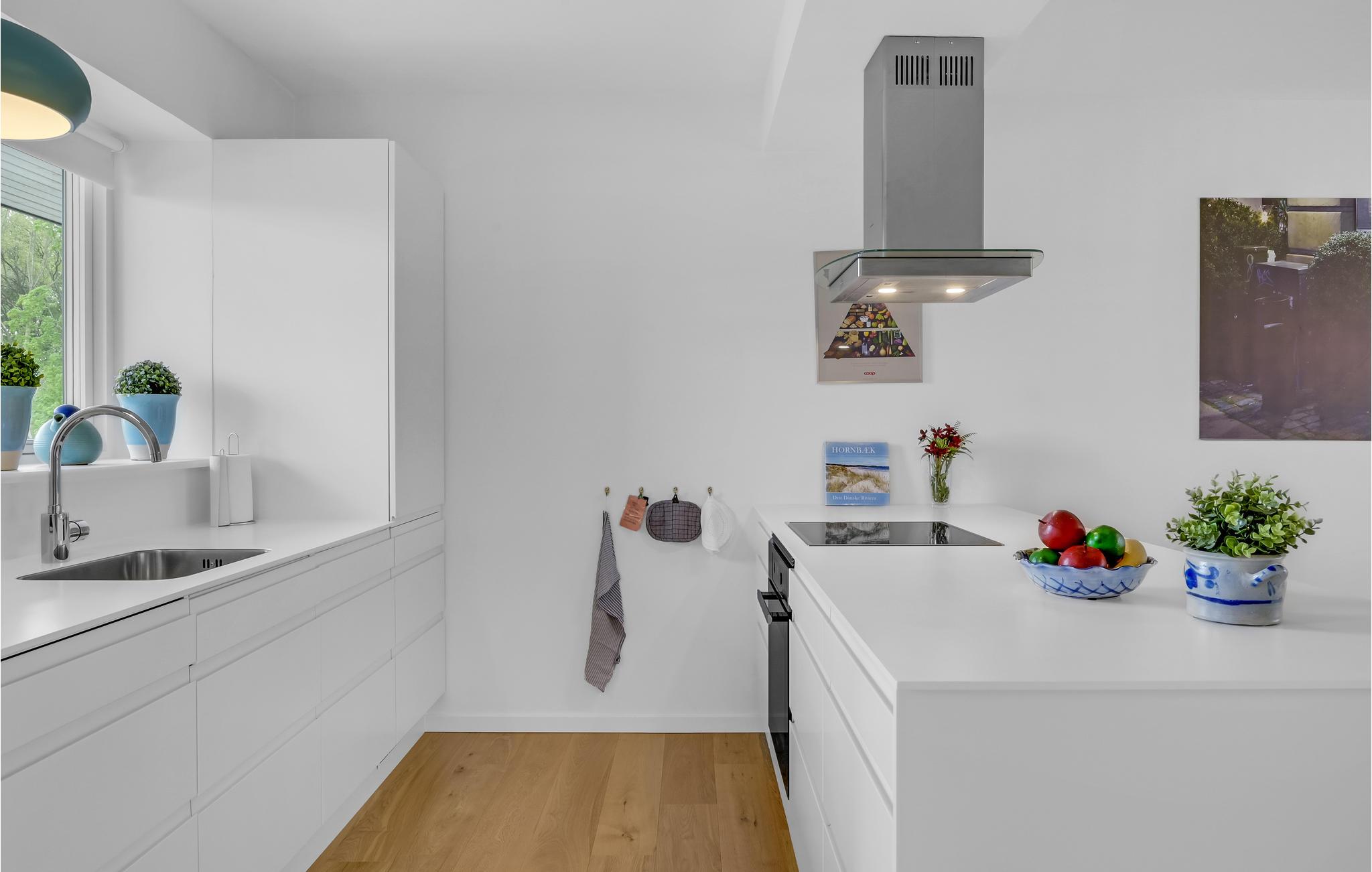 I Hornbæk Skovpark, med få kilometers afstand til hyggelige Hornbæk, ligger denne meget smagfuldt indrettede ferielejlighed på første sal. Lejligheden har dejlige altaner på begge sider af ejendommen - på den ene kan I nyde morgenkaffen og se solen stå op, mens modsatte side er klar til hyggelige aftener med lækkert mad og den smukke solnedgang. Fra begge sider af lejligheden er der et rigtig godt lysindfald, der gør at lejligheden er meget lys og indbydende. Det lækre, åbne køkken ligger i forbindelse med stuen, der er indrettet med flotte, klassiske møbler.