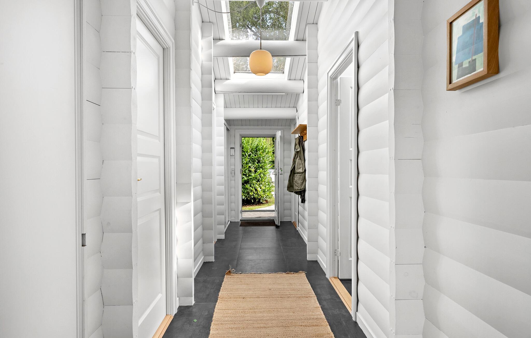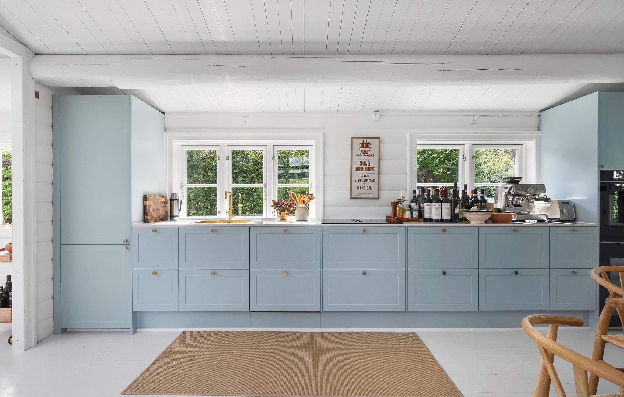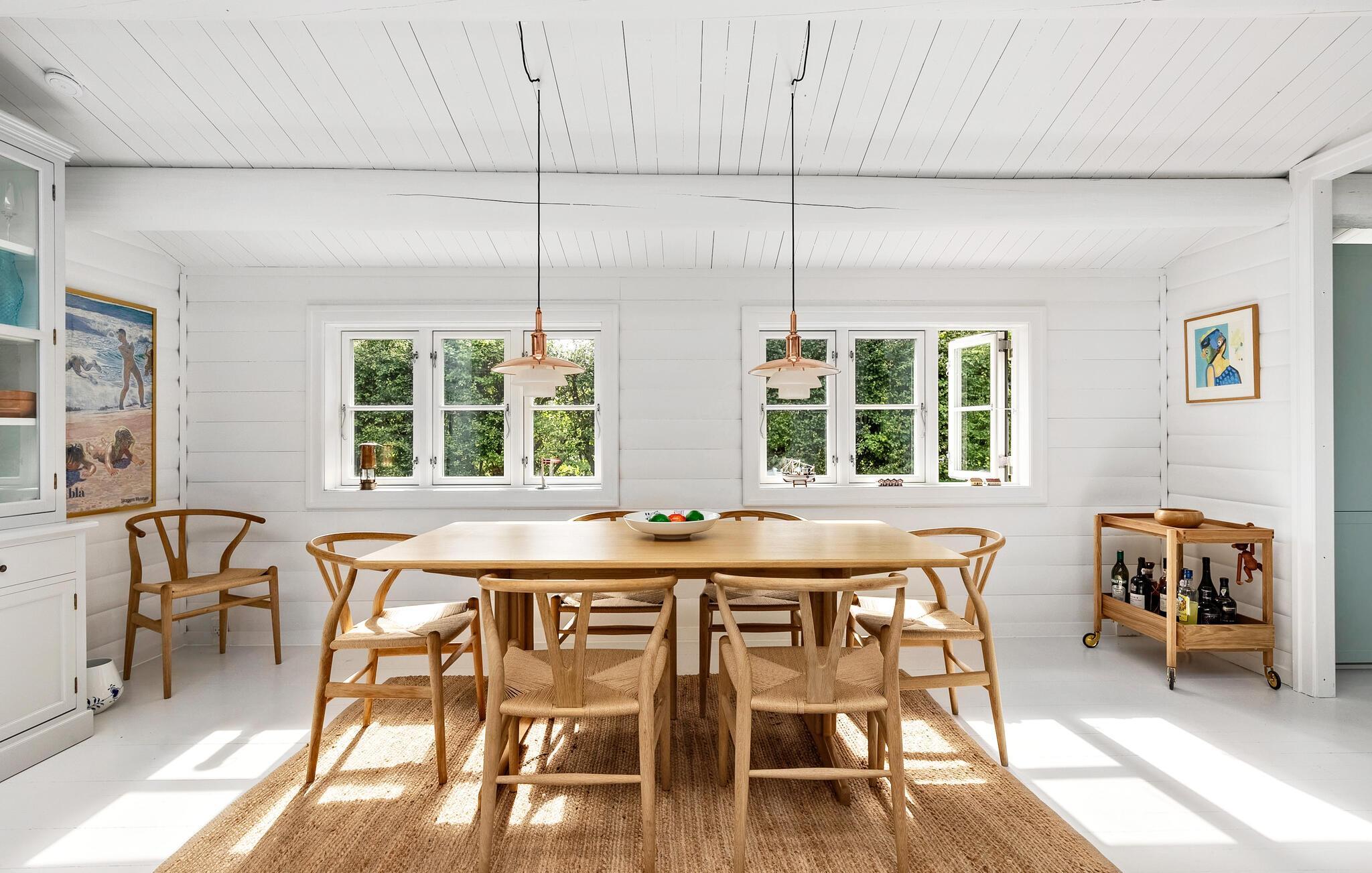 Dette komfortable feriehus kan prale af en åben og smagfuld opholdsstue, masser af naturligt dagslys og en smuk udsigt over de omkringliggende grønne områder. Skab kulinariske lækkerier og brug den hyggelige spiseplads til harmoniske måltider og sjove spilleaftener. Efter en lang dag i den friske havluft kan I samles i den behagelige sofa og streame en film, mens brændeovnen bader rummet i varmt lys.