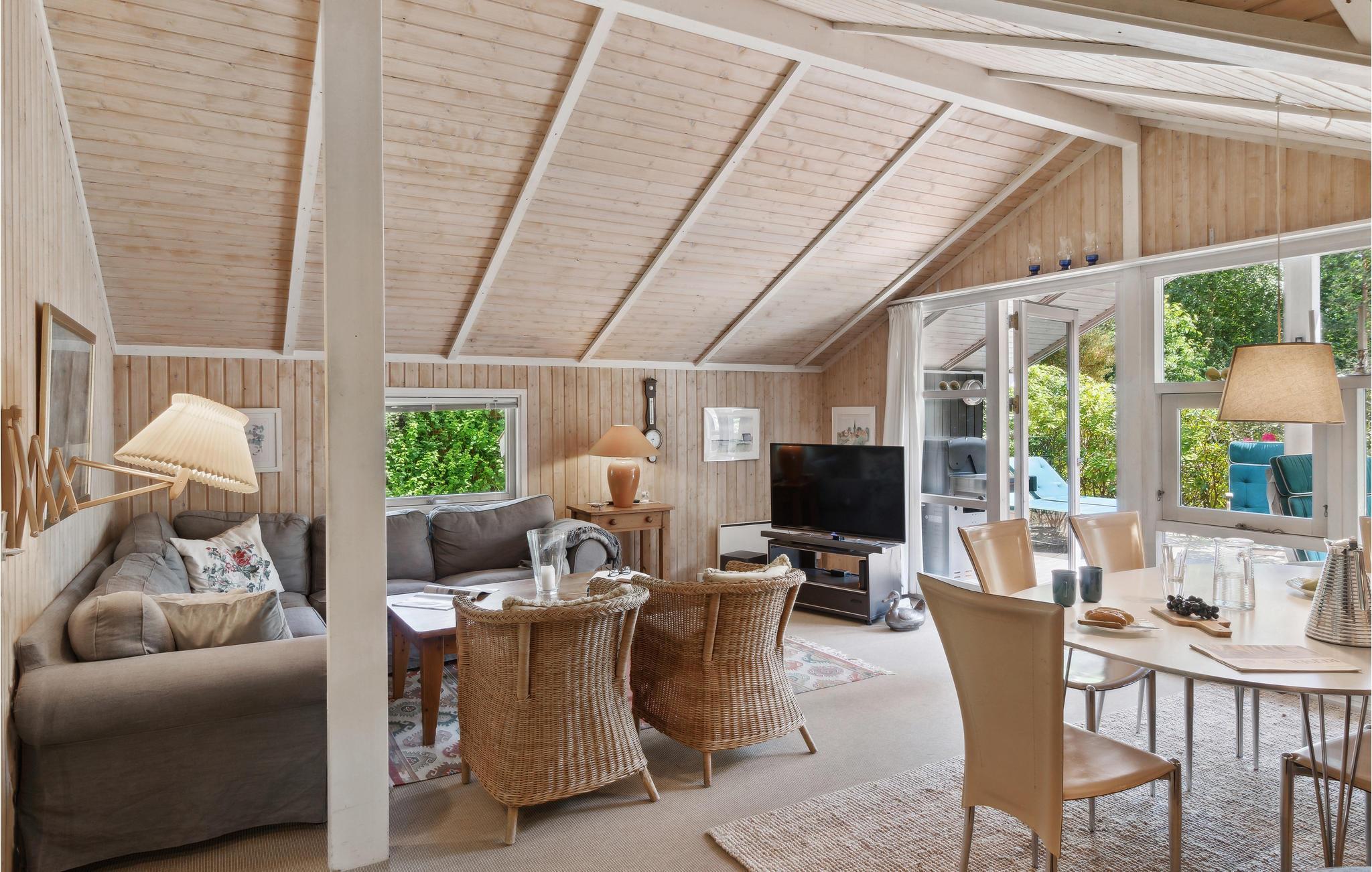 Tag med familien til Sjællands nordkyst og hold en afslappende ferie i dette hyggelige feriehus. De lyse trævægge og de høje, lyse lofter bidrager til en beroligende atmosfære, hvor I vil føle jer hjemme. Hyg jer med spil, læg et puslespil eller se en film i stuen. Her er der kun fokus på nærvær. Nyd en lækker frokost ved spisebordet, inden I tager til stranden. Lad jeres børn tumle i haven, mens I sætter kaffe, kage, saft eller måske lidt frisk frugt frem på terrassen. I kan også lege skovtur i den dejlige have med smukke rhodondendroner. Efter aftensmaden kan I hygge jer i vildmarksbadet.