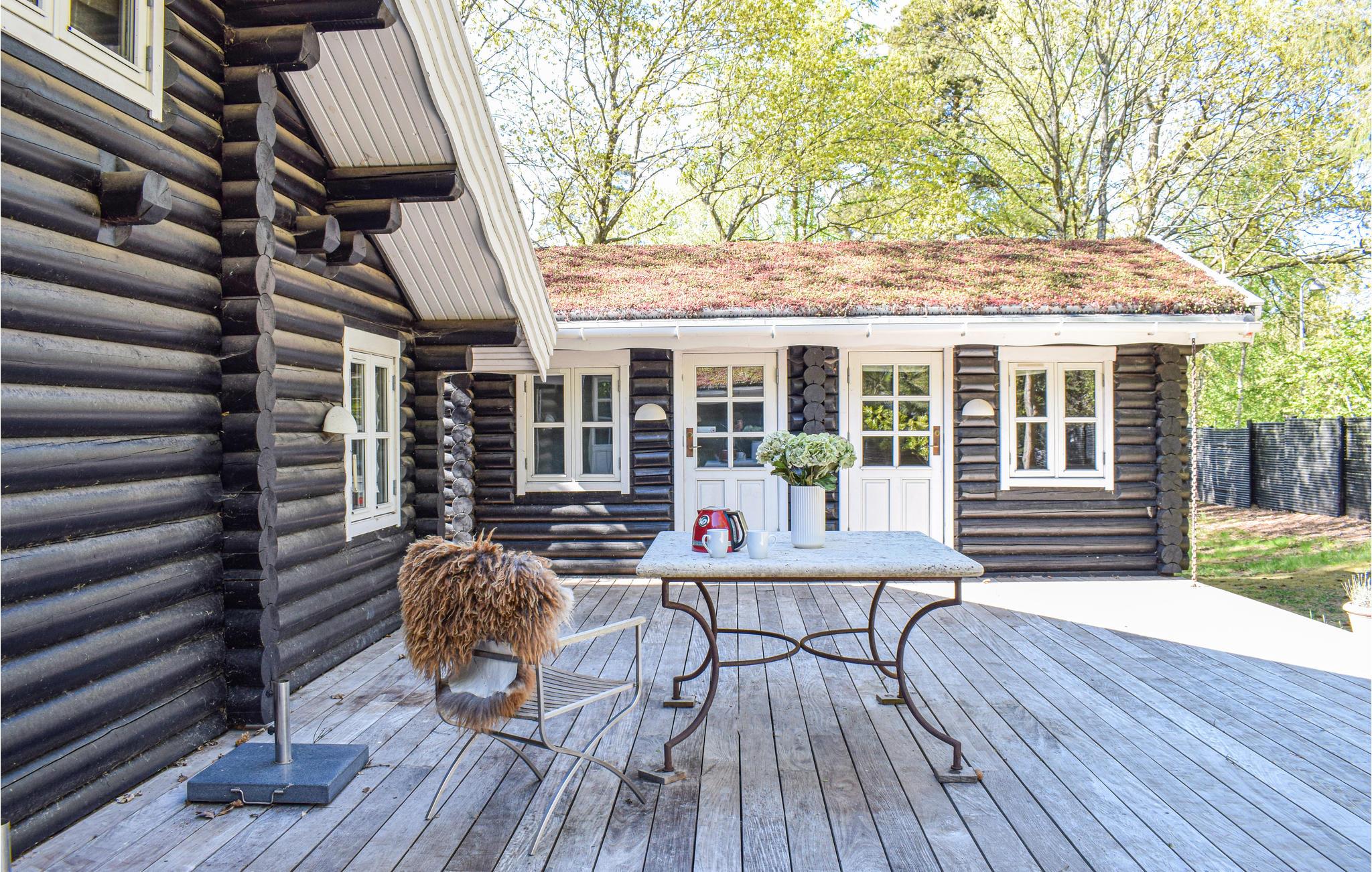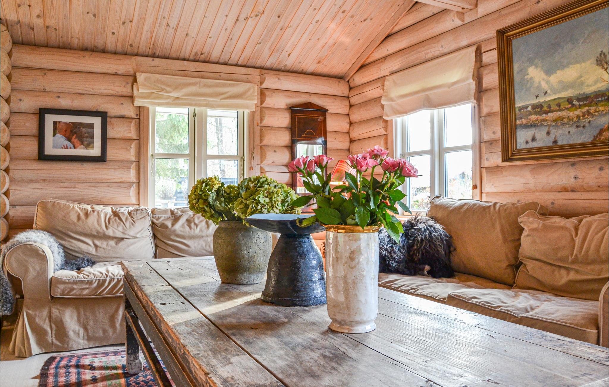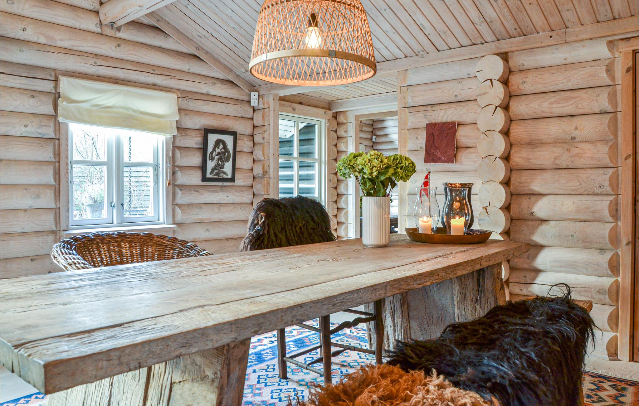 Feriehuset er smagfuldt indrettet med sans for detaljerne og brændeovnene spreder en behagelig varme i opholdsstuen og køkkenalrummet. Der er loft til kip i alle rum, og de smukke bjælker er med til at skabe en ekstra hyggelig atmosfære. Den skønne stue ligger i forlængelse af det veludstyrede køkken med en dejlig spiseplads. I huset er der 4 gode soveværelser. Nyd ferien på den dejlige terrasse, hvor træerne giver pletvis skygge gennem dagen. Grunden ligger direkte ud til "Rusland", hvor I finder smukke vandrestier og Rudolph Tegners museum.