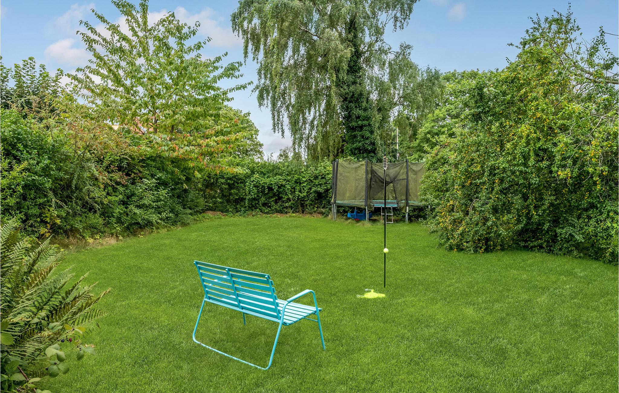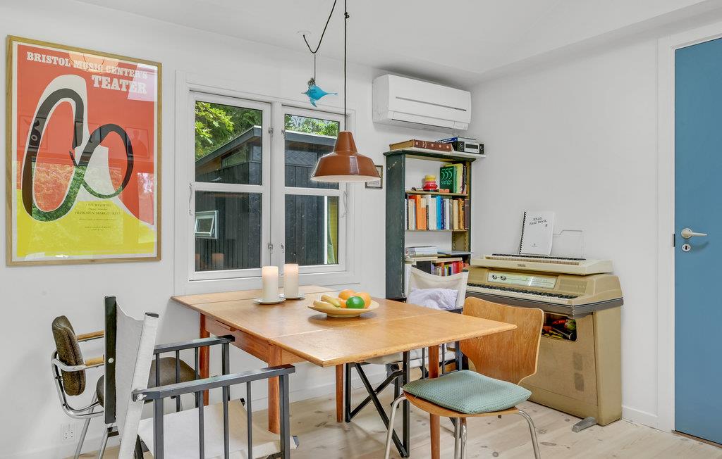 Huset har tre soveværelser, så her er der god plads til en familie. Rummene er hyggeligt og komfortabelt indrettede, og de store vinduer giver en dejlig udsigt til den grønne grund. I stuen er der lagt op til hyggelige aftener med spil eller en god bog, mens I nyder varmen fra brændeovnen.