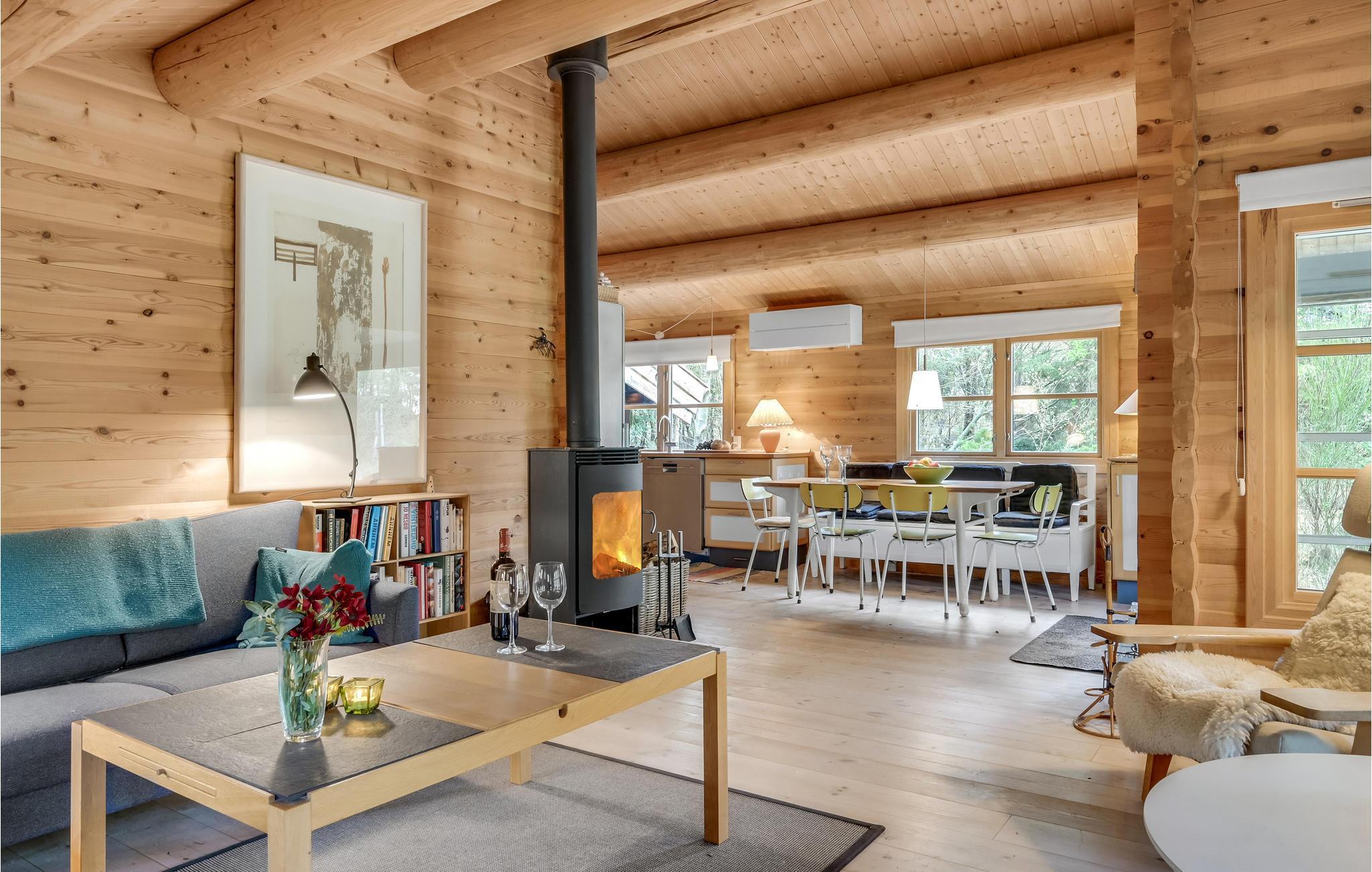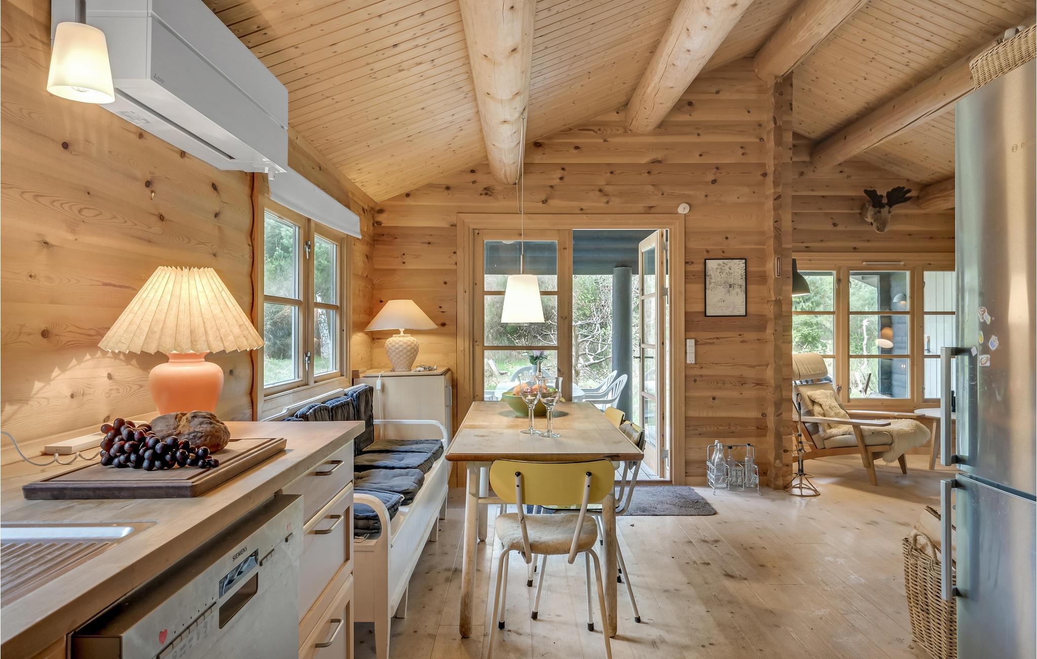 Dett indbydende sommerhus med græsklædt tag har en helt særlig atmosfære. Velvalgt indretning og flotte detaljer kan I spotte over det hele, og samtidig kan I nyde høj komfort. De tre soveværelser har plads til seks personer, og huset kan benyttes på alle årstider. I vinterhalvåret er det skønt med lange gåture på stranden, hvorefter I kan få varmen i stuen, mens ilden buldrer i brændeovnen.