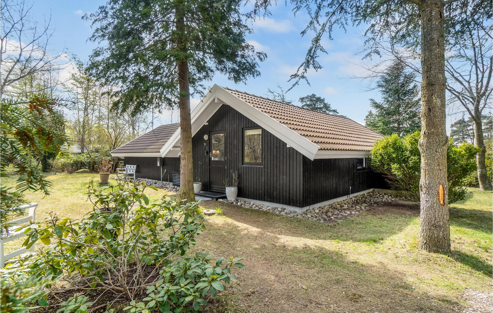 Velindrettet træsommerhus nær Hornbæk Strand med terrasse, brændeovn og privat have til afslappende feriedage.