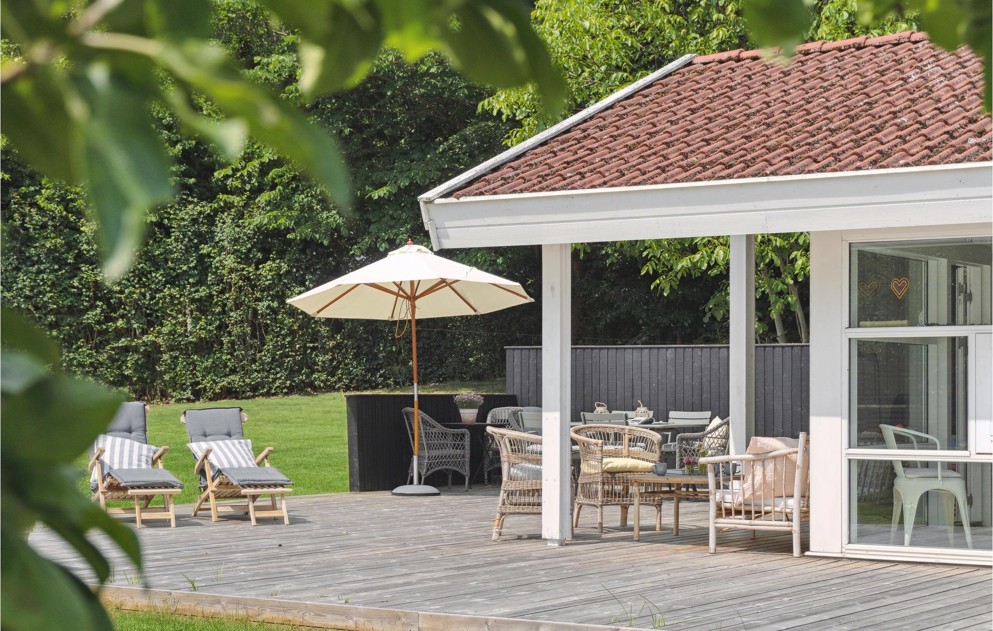 Hyggeligt sommerhus nær Hornbæk Strand med moderne faciliteter, legeplads og bålplads for en perfekt familieferie.