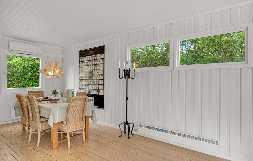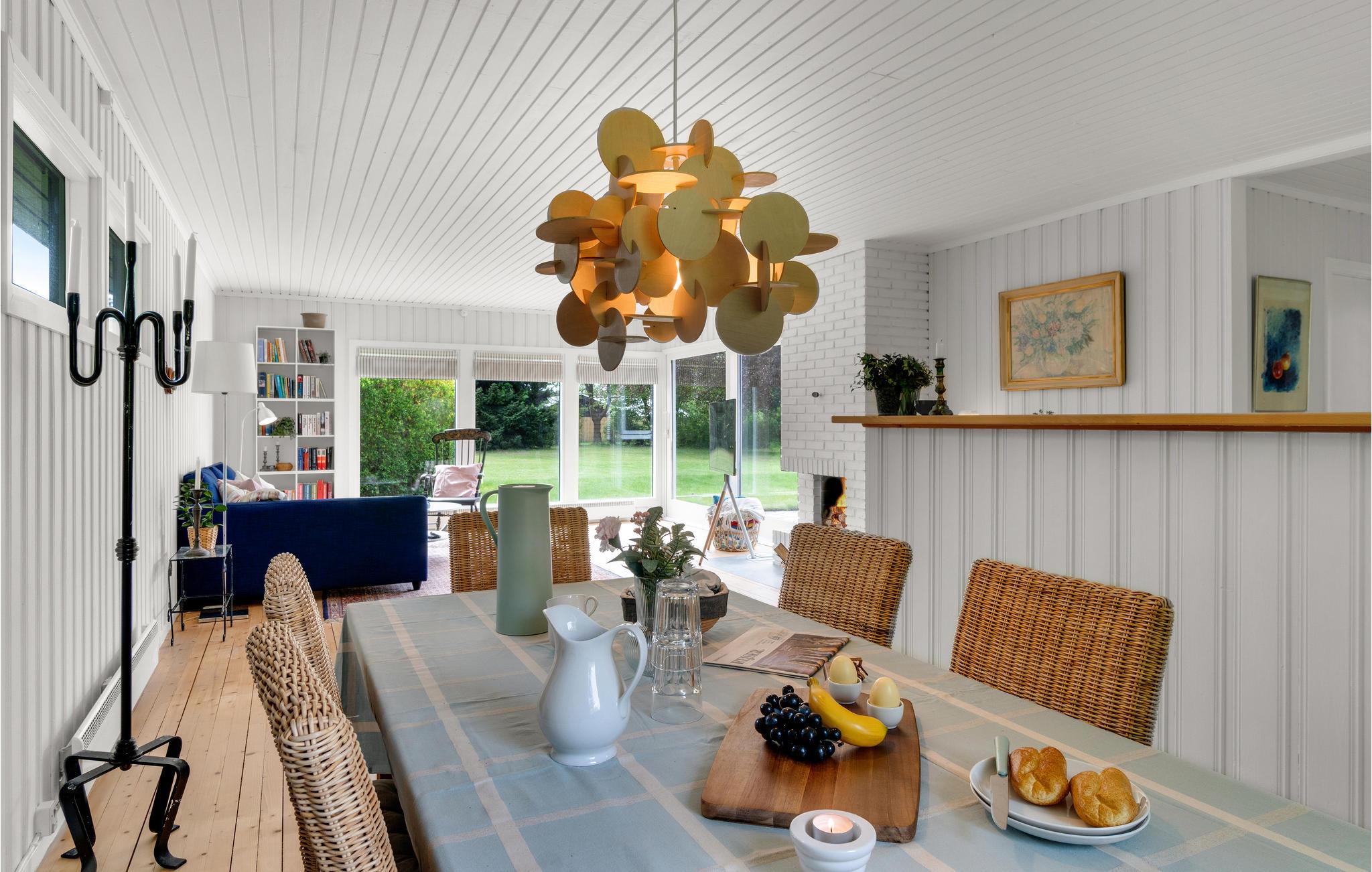 Tag en pause fra den hektiske hverdag, og tag til dette feriehus i Stenstrup ikke langt fra Hornbæk. Kombinationen af hvid og lyst træ, den åbne planløsning og ikke mindst de store vinduer giver en følelse af lys, rummelighed og lethed. I den lyse og rummelige opholdsstue kan I lave mad og spise sammen, slappe af foran pejsen og se en god film i fjernsynet. Eller slå jer ned på gulvet eller ved spisebordet sammen med børnene, og tilbring hyggelige timer med spil og samvær.