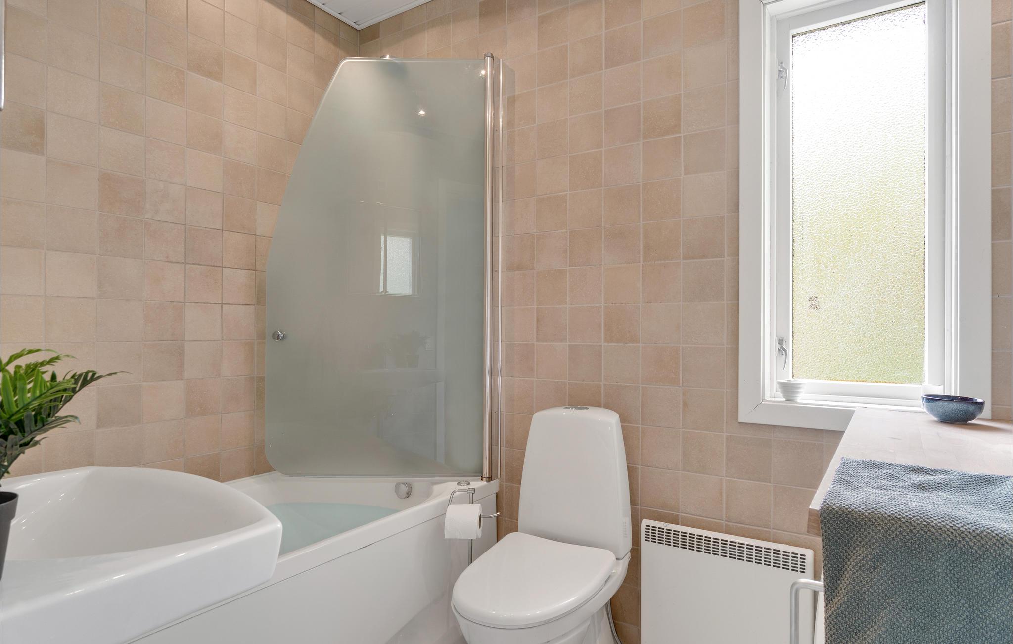 Badeværelse (nr. 1) - WC. Varmt og koldt vand. Håndbruser, badekar og bruser