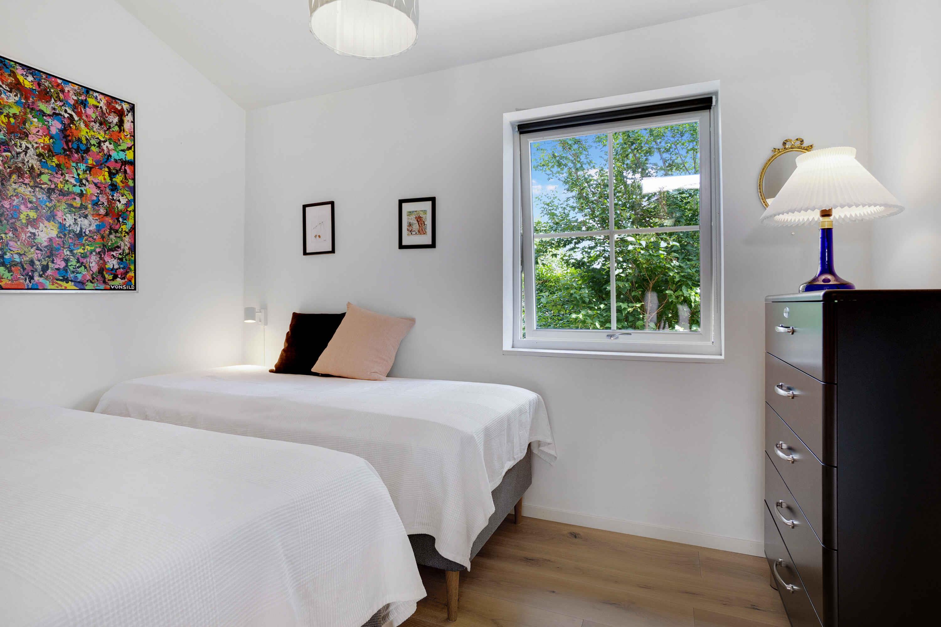 Ved den fortryllende og eftertragtede kystby Hornbæk, med blot omkring 1 km til den forfriskende hvide sandstrand, der er indhyllet i klitlandskaber og omkranset af skov, finder du dette charmerende nye træhus. Her er der rigelig plads til hele familien, så I kan skabe uforglemmelige øjeblikke sammen. Indretningen af huset emmer af hygge og komfort, med et veludstyret køkken, gulvvarme der kærtegner fødderne, og et indbydende lys, der danser gennem alle rum og fra loftet i det rummelige køkken-alrum. De høje lofter tilføjer en luftig og vidunderlig atmosfære til hvert eneste hjørne. Den fortryllende stue flyder naturligt fra det veludstyrede køkken og byder på en herlig spiseplads. Huset rummer tre generøse soveværelser med i alt plads til seks drømmende sjæle. Fra både køkkenet og stuen er der direkte adgang til en solbeskinnet træterrasse og en indbydende grøn plæne. Området indbyder til afslappende gåture i naturen, omgivet af strande, skovområder og en skøn sø. Hornbæk selv byder på en livlig atmosfære med charmerende butikker, kunstgallerier, hyggelige caféer og en malerisk havn, hvor I kan hente friske fangster med hjem til grillen. Gå på opdagelse i det udendørs kunstunivers i "Rusland", hvor Tegners Museum og Havreholm Klatrepark venter. Dette er en perfekt familieaktivitet, der bringer jer alle til nye højder på de udfordrende baner. Og skulle I ønske endnu mere sjov, kan I prøve kræfter med disc golf på den ni-hullers bane.
