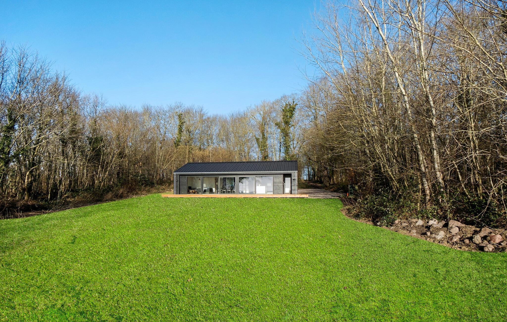 På terrassen kan I slappe af i det fri og nyde den fantastiske udsigt, mens den store grund med egen skov indbyder til afslappende gåture.