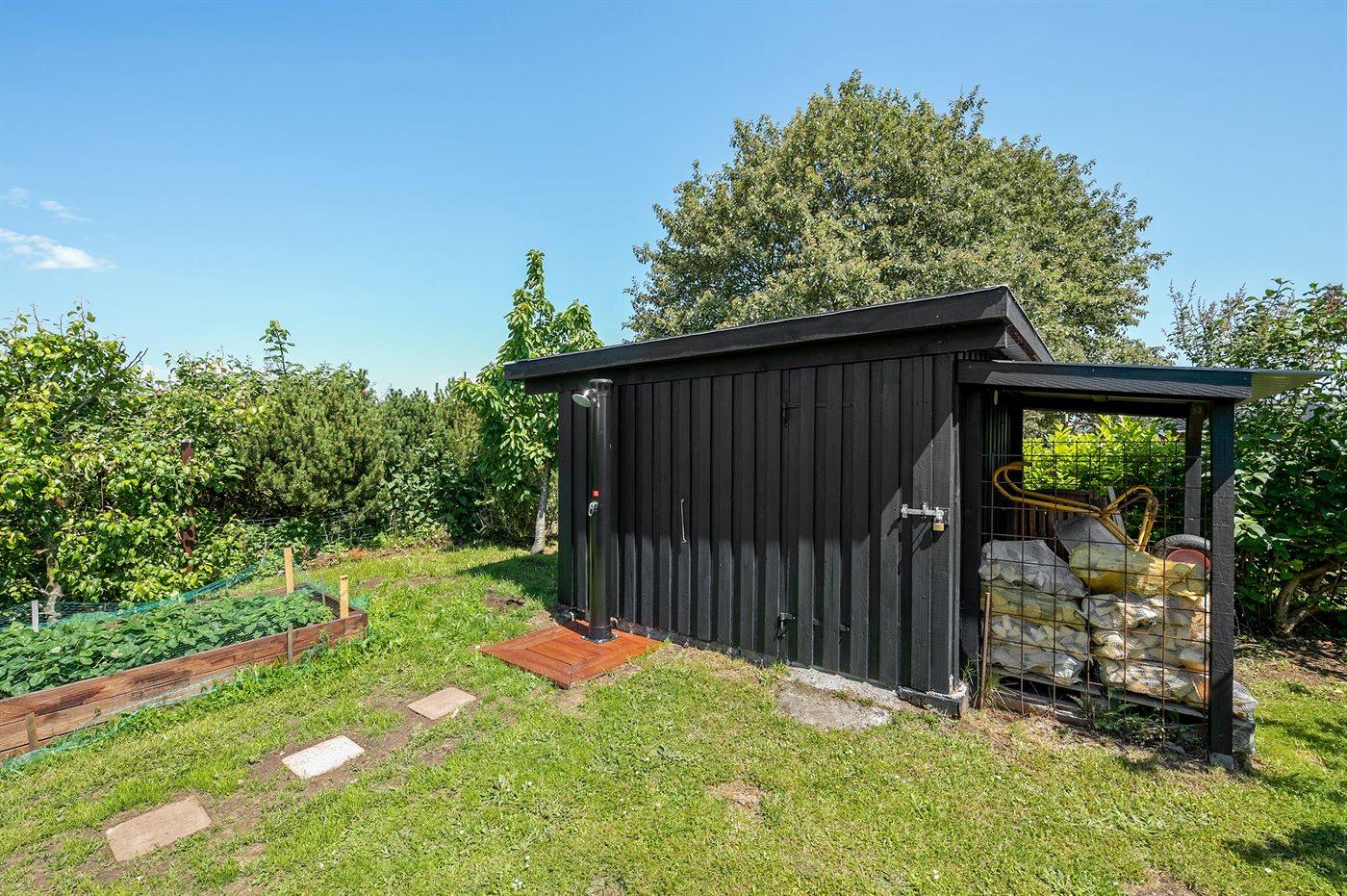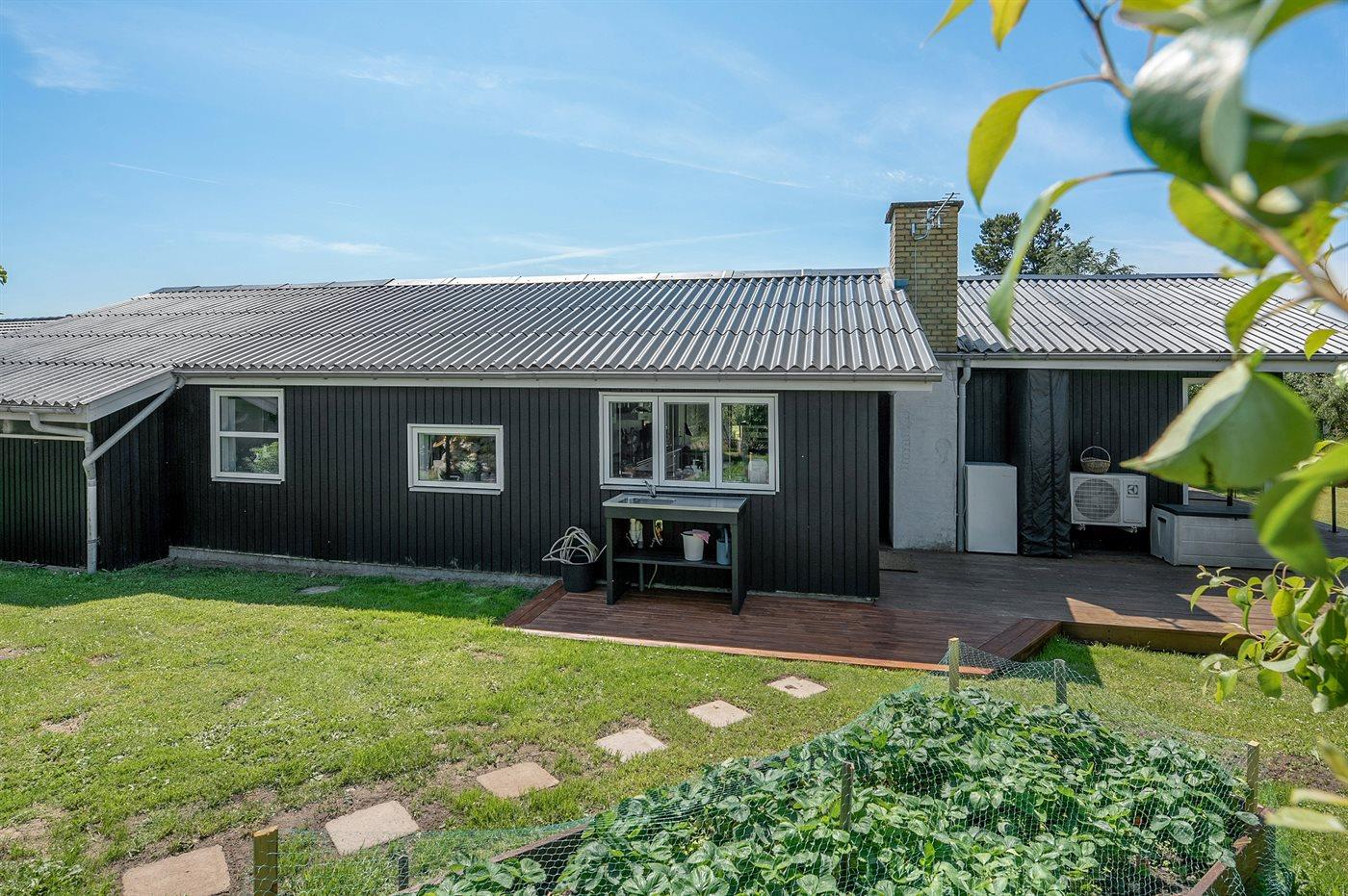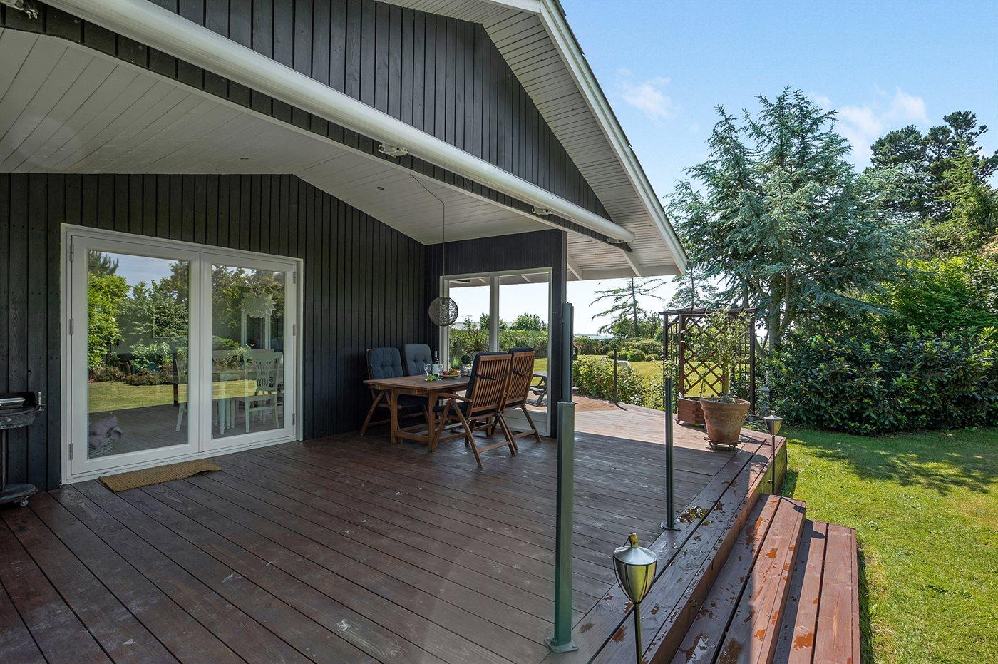 Ferieboligen er beliggende på en 1120 m² stor havegrund. Der er 150 m til havet. Nærmeste forretning er beliggende i en afstand af 2000 m. Til ferieboligen hører åbent terrasseareal. Desuden er der overdækket terrasse. Gynge. Rutchebane. Bålsted. Udendørs bruser. Grill til rådighed. Udendørs bord med vask til f.eks. rengøring af fisk. Parkering ved ferieboligen.