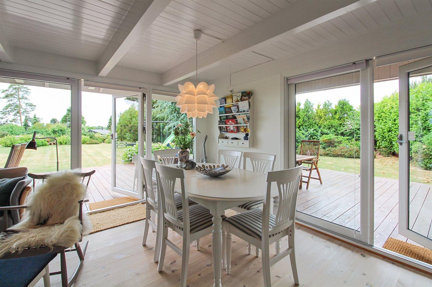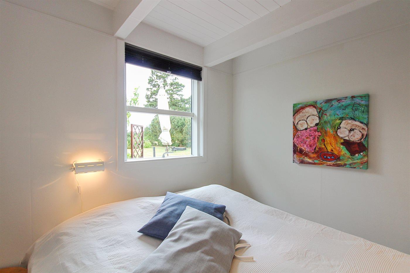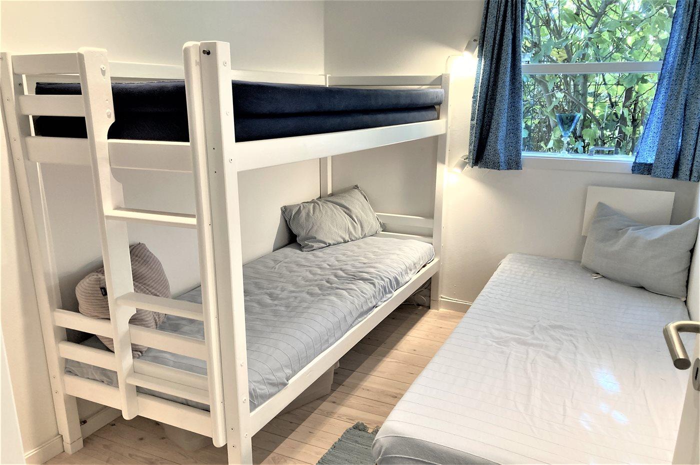 Der er i alt 3 soveværelser. Sovepladserne fordeler sig på: 4 sovepladser i dobbeltsenge. 1 soveplads i enkeltseng. 2 sovepladser i køjeseng. Derudover er der 1 stk. barneseng.