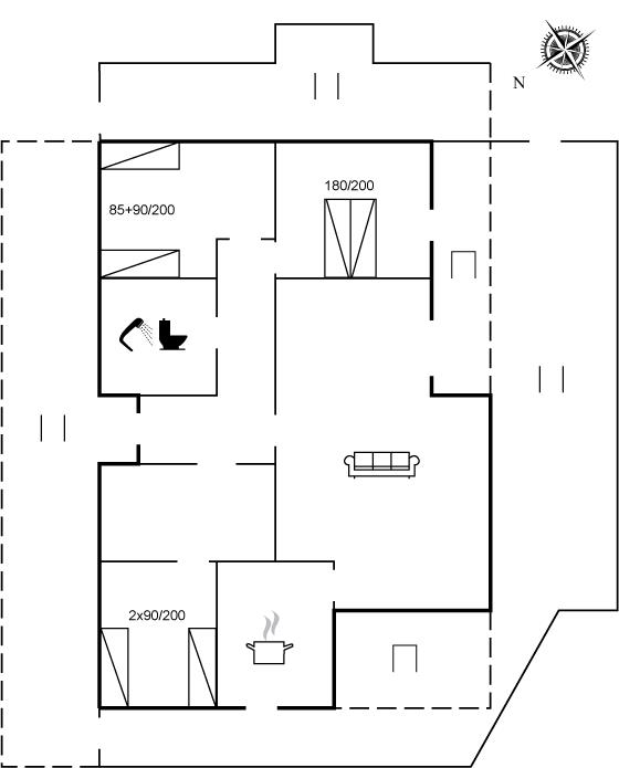 Der er i alt 3 soveværelser. Sovepladserne fordeler sig på: 2 sovepladser i dobbeltseng. 4 sovepladser i enkeltsenge.
