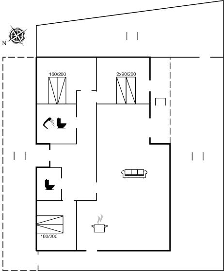 Der er i alt 3 soveværelser. Sovepladserne fordeler sig på: 4 sovepladser i dobbeltsenge. 2 sovepladser i enkeltsenge.