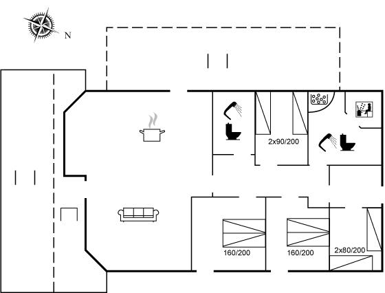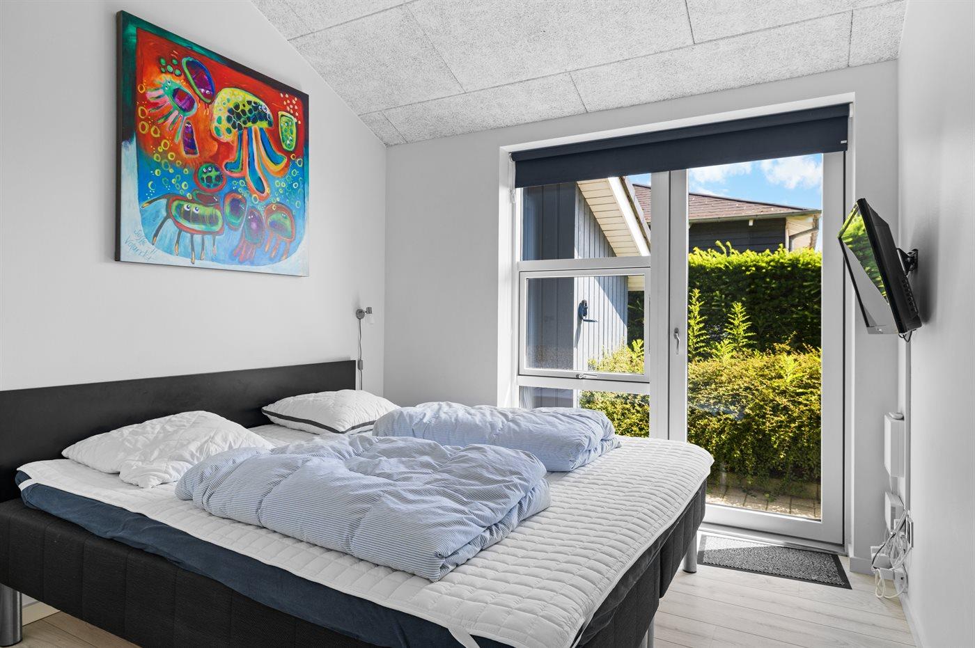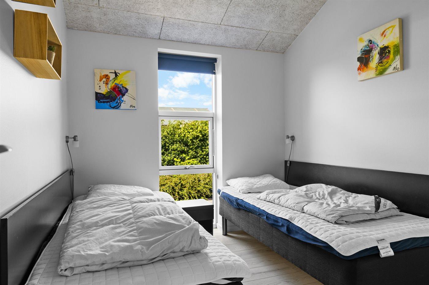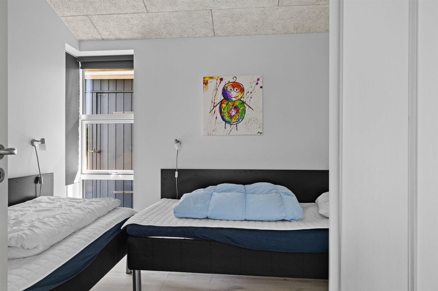 Der er i alt 4 soveværelser. Sovepladserne fordeler sig på: 4 sovepladser i dobbeltsenge. 4 sovepladser i enkeltsenge. Derudover er der 2 stk. barnesenge.