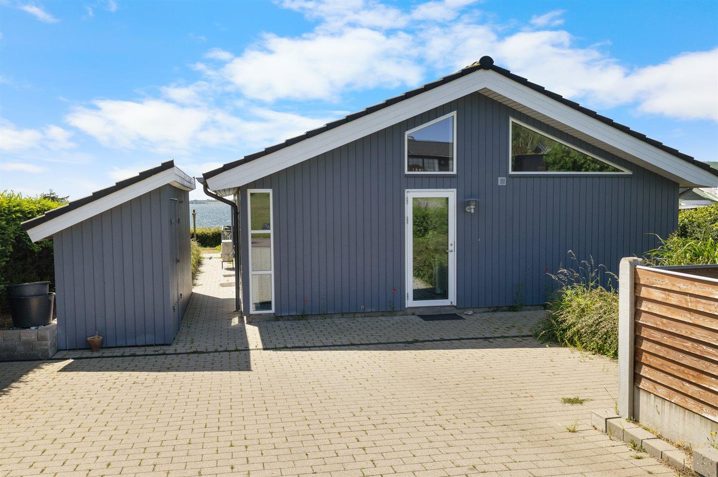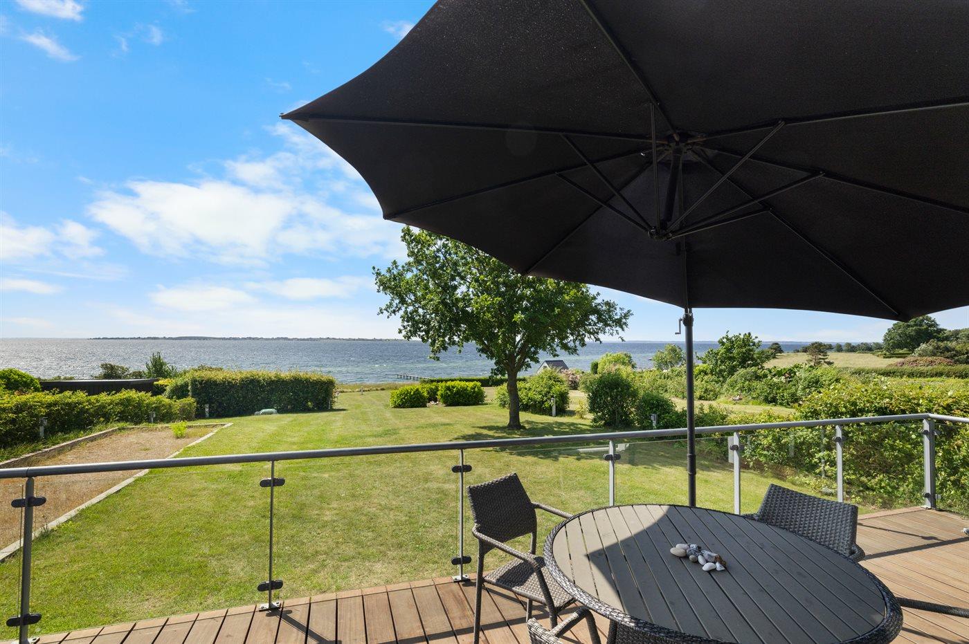 Fra både huset og den dejlige terrasse foran huset er der panoramaudsigt ud over vandet. Huset er moderne og lyst indrettet. I haven er der bl.a. petanque-bane og bålsted, hvorfra man kan gå direkte ned til stranden, hvor der i sommerperioden er opsat fælles badebro.