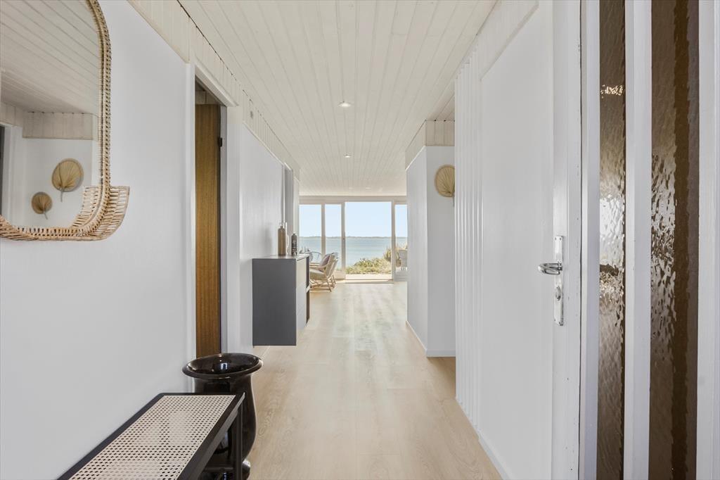 Huset indeholder en entré, der naturligt fører en videre til opholdsrummet med en fantastisk udsigt over haven og havet. Derudover er der et veludstyret køkken i åben forbindelse med stue med spiseplads og udgang til terrasse. Der er desuden et badeværelse og i alt tre soverum: et soveværelse med en dobbeltseng, et værelse med to enkeltsenge samt et værelse med en enkeltseng.