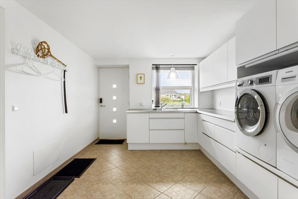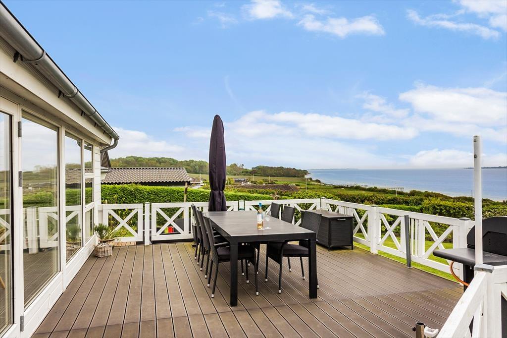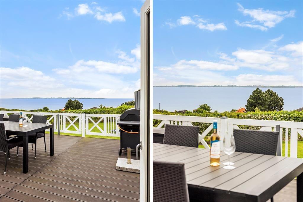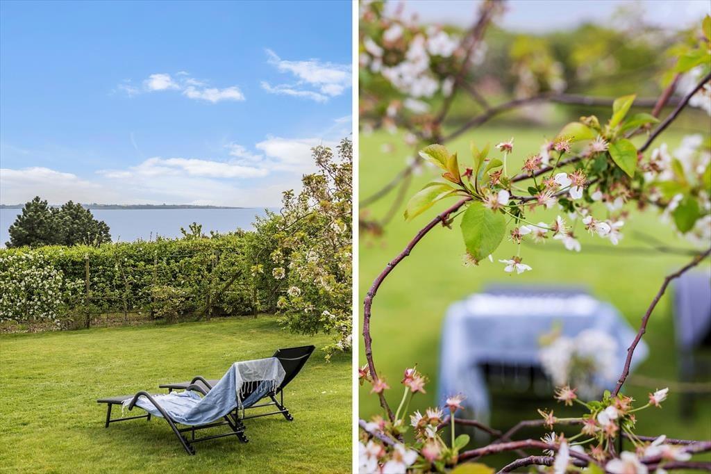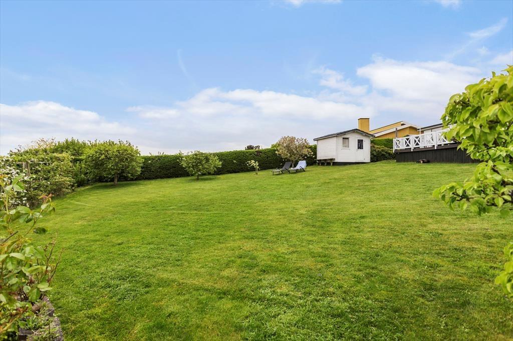 Når vejret lokker dig fra udestuen og helt ud på terrassen, har du frit udsyn over det betagende kystlandskab, og de øvrige sanser vækkes også af den lune sol og duften fra havens frodige bevoksning. En del af det sydvendte terrassemiljø er i direkte forlængelse af udestuen, mens et areal ligger et niveau lavere, og du kan selvfølgelig også sætte dig i en solstol direkte på græsplænen, hvis du trænger til at flytte dig lidt rundt. Den lukkede og let skrånende baghave indbyder til leg og afslapning for både børn og voksne, og hvis du og familien har brug for mere plads at boltre jer på, kan I hurtigt være nede ved Horne Sommerlands hyggelige strand.