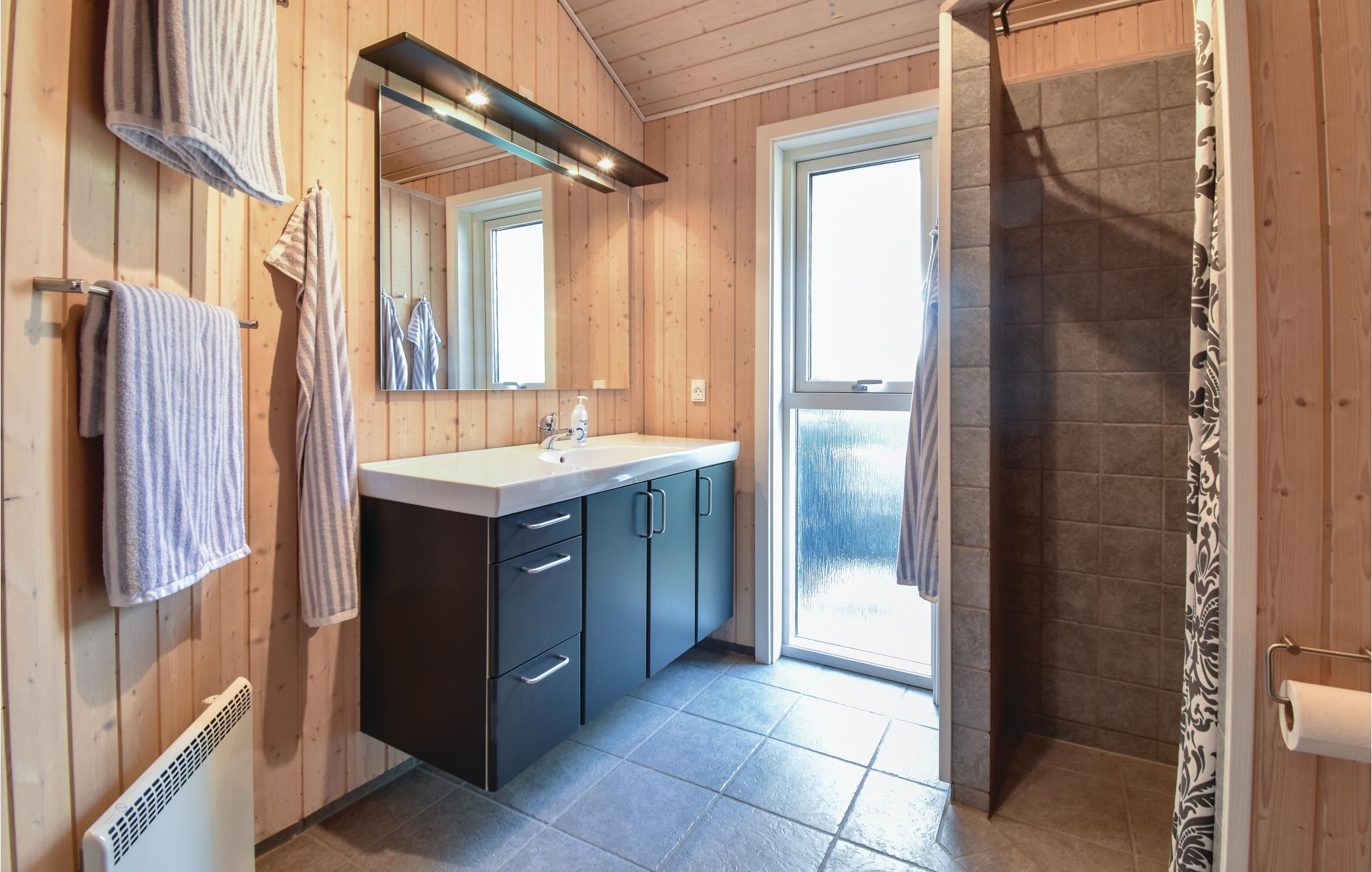 Huset har tre veldisponerede soveværelser, master bedroom med dobbeltseng, et værelse med to enkeltsenge samt en weekendseng til de mindste, og et værelse med endnu en dobbeltseng. Endvidere findes en hems med madrasser til leg og ophold for børnene. Husets flotte badeværelse byder ligeledes på god lofthøjde, god plads og brus. Alt i alt et sommerhus der danner gode rammer for jeres næste ferie.