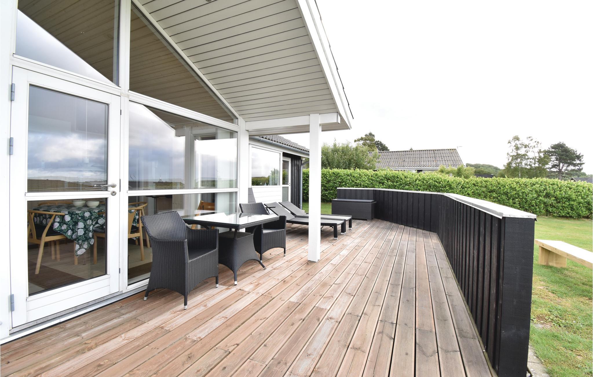 I bydes hermed velkommen til et flot, højtbeliggende feriehus med en flot udsigt. Der er her tale om et hus i særklasse. Huset fremstår flot, lyst og imødekommende, og den gode lofthøjde i de fleste rum giver en følelse af plads og velvære. Ved ankomst til huset ses først den flotte grund, der indbyder til udendørs ophold og leg. I kommer nærmere huset, og ser de omkringliggende terrasser, der har en flot udsigt over havet og naturen. Terrasserne ligger således at der er plads til alle, både at sidde sammen, men også lidt fra hinanden. Fra terrassen kan I se en af de små stier, der fører til stranden og havet.