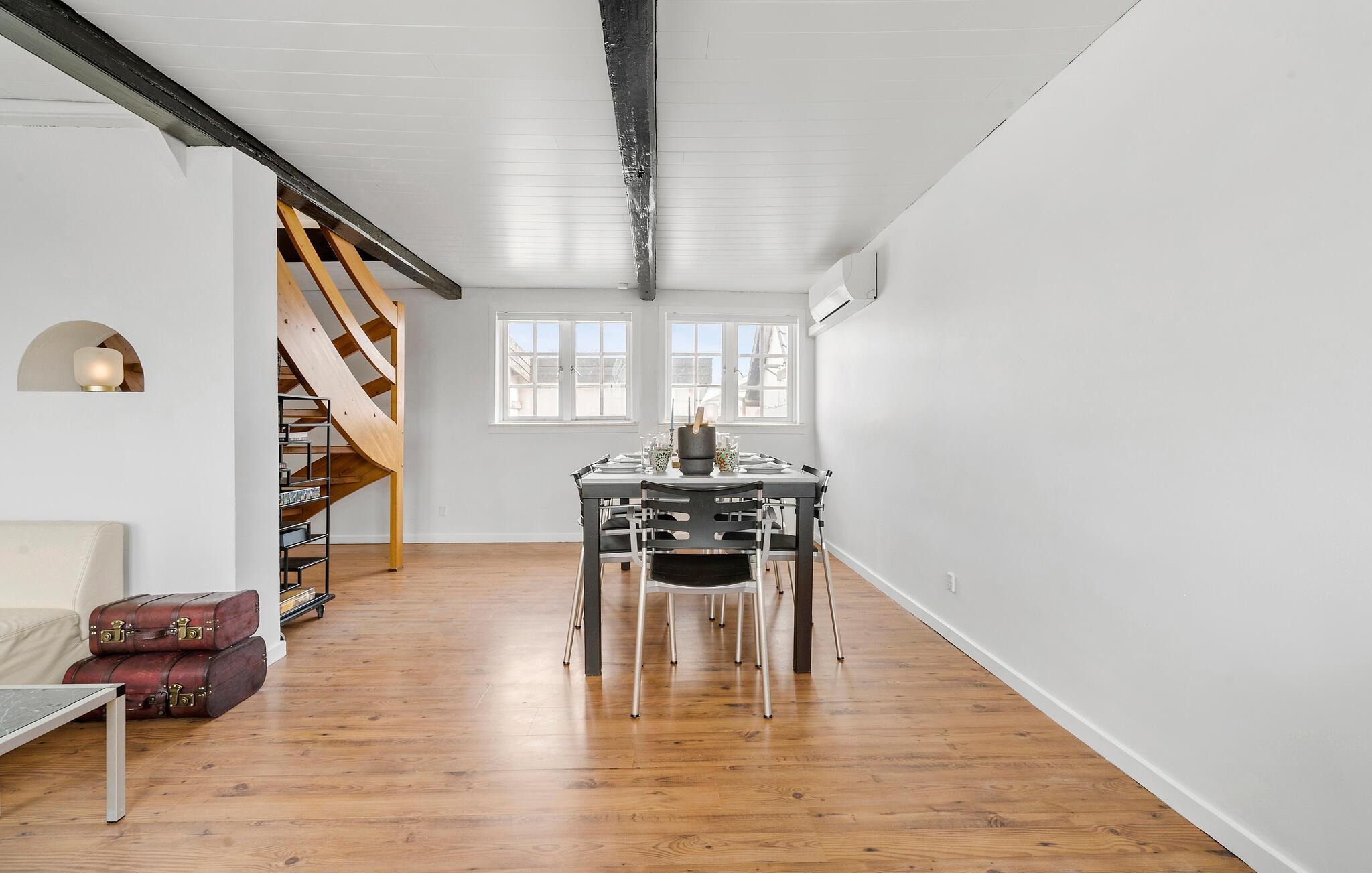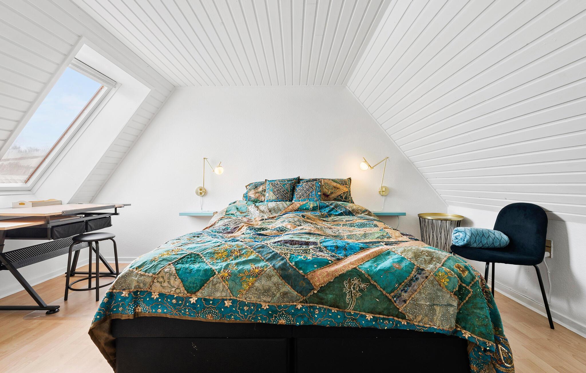 Tag den udvidede familie under armen og rejs til Horne, hvor der venter jer et herligt ophold i denne hyggelige bolig. Huset er indrettet over to etager med mange gode soveværelser, og i stueetagen finder I det store køkkenalrum, der bliver hjertet for mange rare stunder i godt selskab. Gør madlavningen til et fornøjeligt fælles projekt i det store køkken og dæk op ved spisebordet til den store festmiddag. Indretningen byder på åbne rum og fritlagte bjælker, der med sine varme farver skaber en rar atmosfære at slappe af i. Køb nogle lækre snacks og gør jer klar til den store filmaften ved projektoren, mens I lægger planer for de kommende dage.