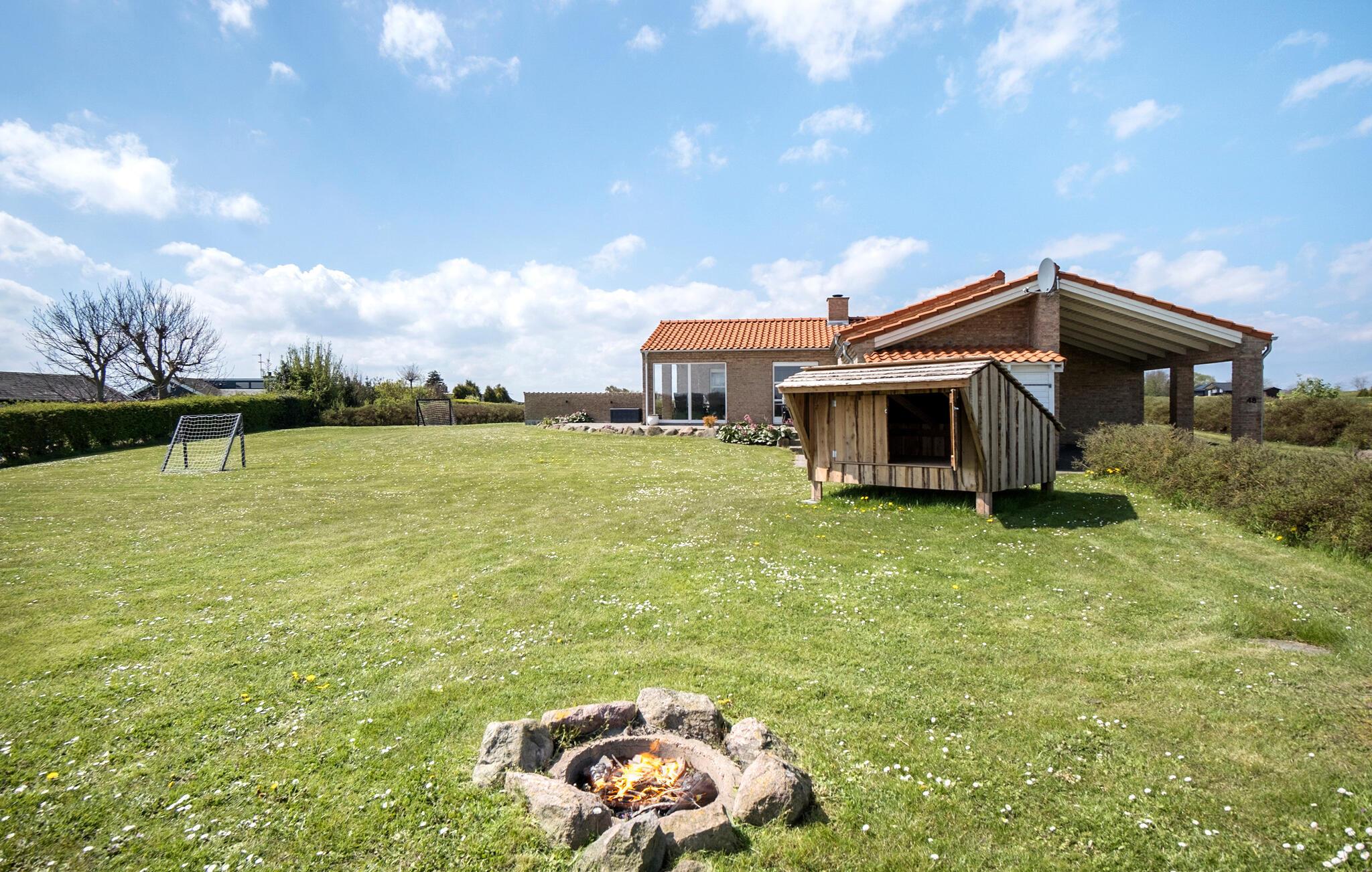 Udeområdet er tilsvarende dejligt. Huset ligger på en stor naturgrund med trampolin, gynge og sandkasse, hvor børnene kan boltre sig lige fra morgenstunden på de smukke sommerdage. Alt imens kan de voksne nyde solen på terrassen, nippe til en kølig drink og smide gode bøffer på grillen til en lækker aftensmad i det fri. Senere kan I sætte jer godt til rette ved den sagte ild ved bålpladsen, og for de særligt friske er der mulighed for at overnatte i shelteret på en stjerneklar nat.