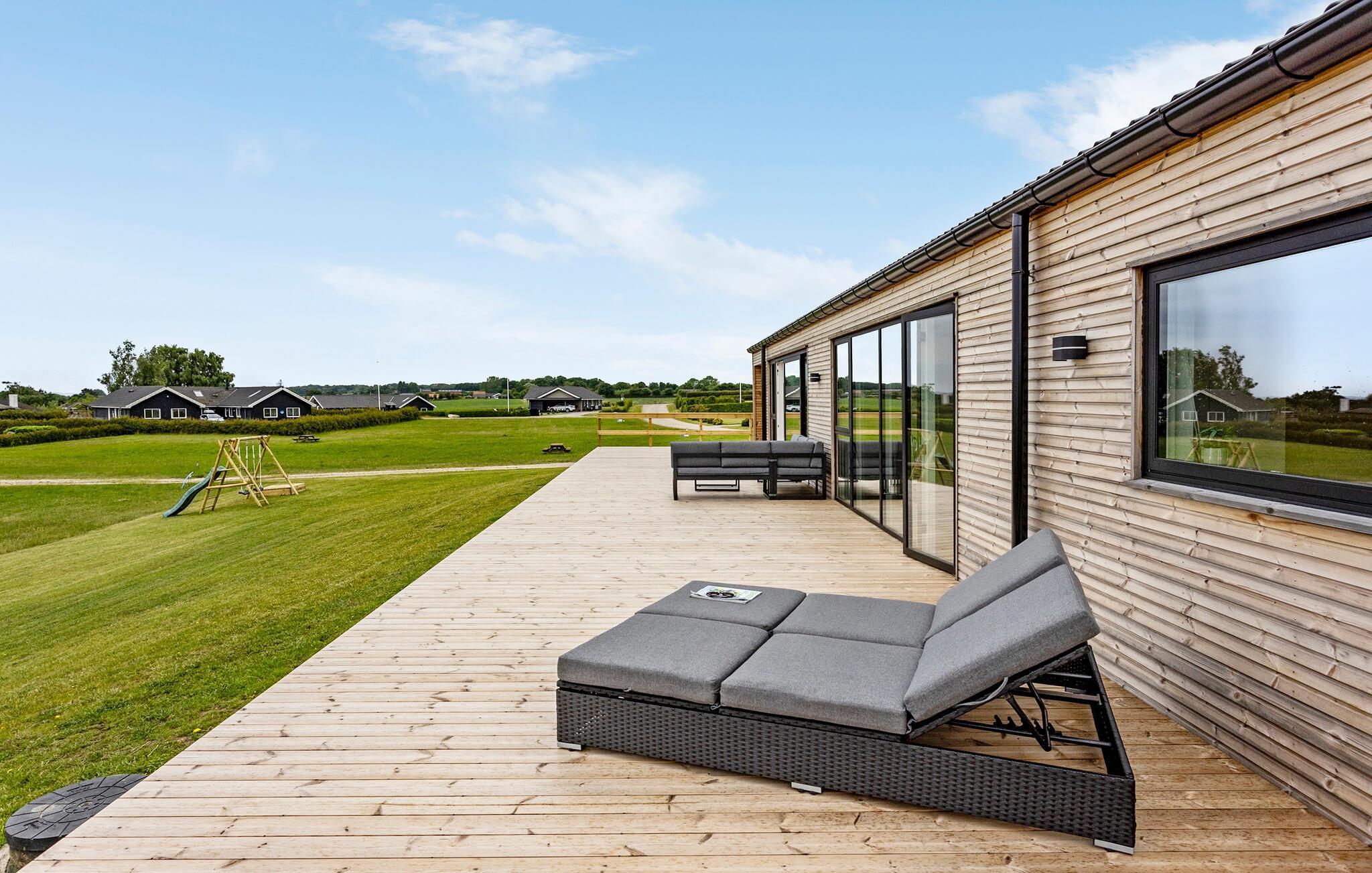 Stilfuldt og moderne feriehus med panoramaudsigt, aktivitetsrum og stor terrasse nær vandet i Horne Sommerland.