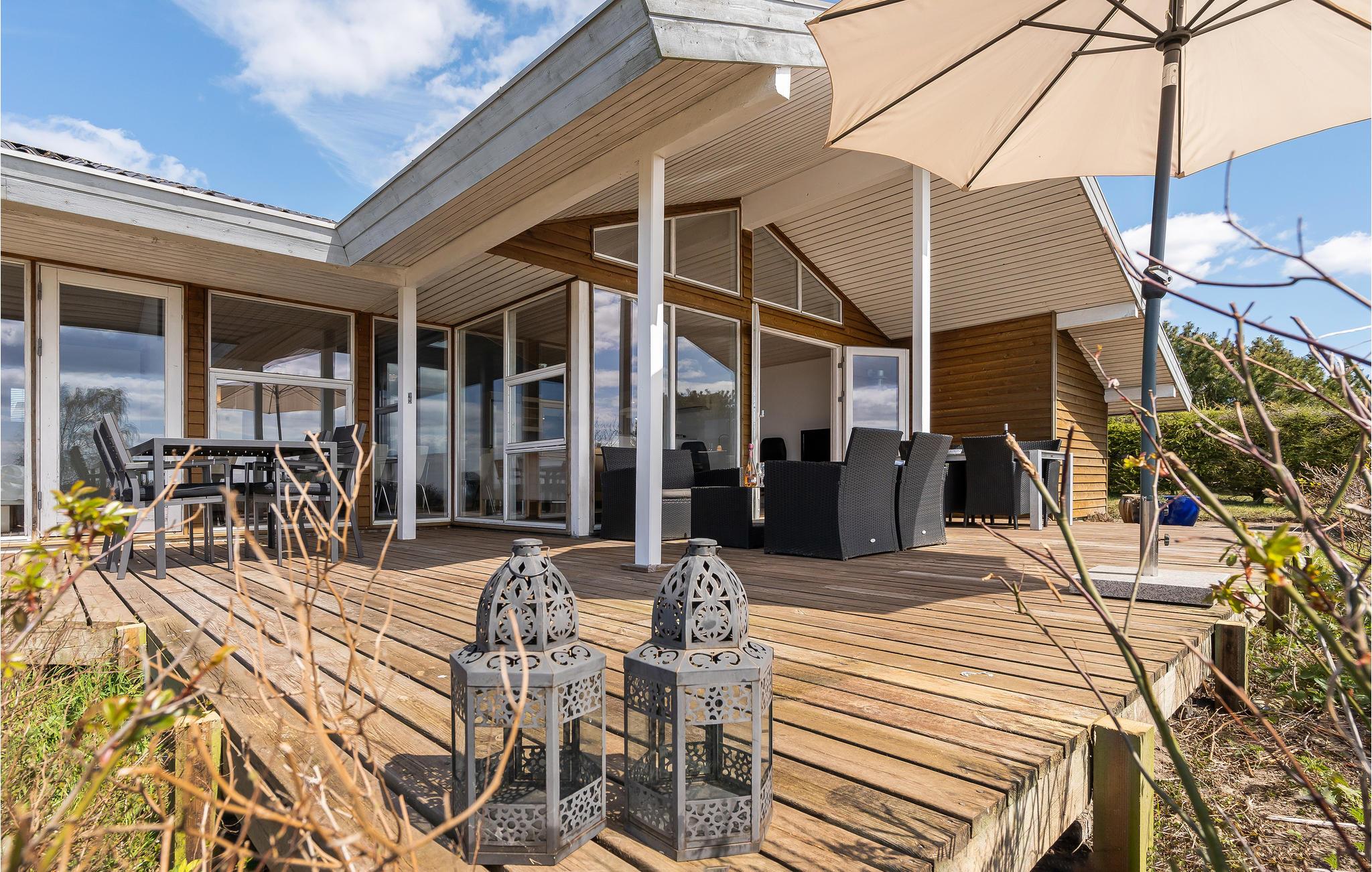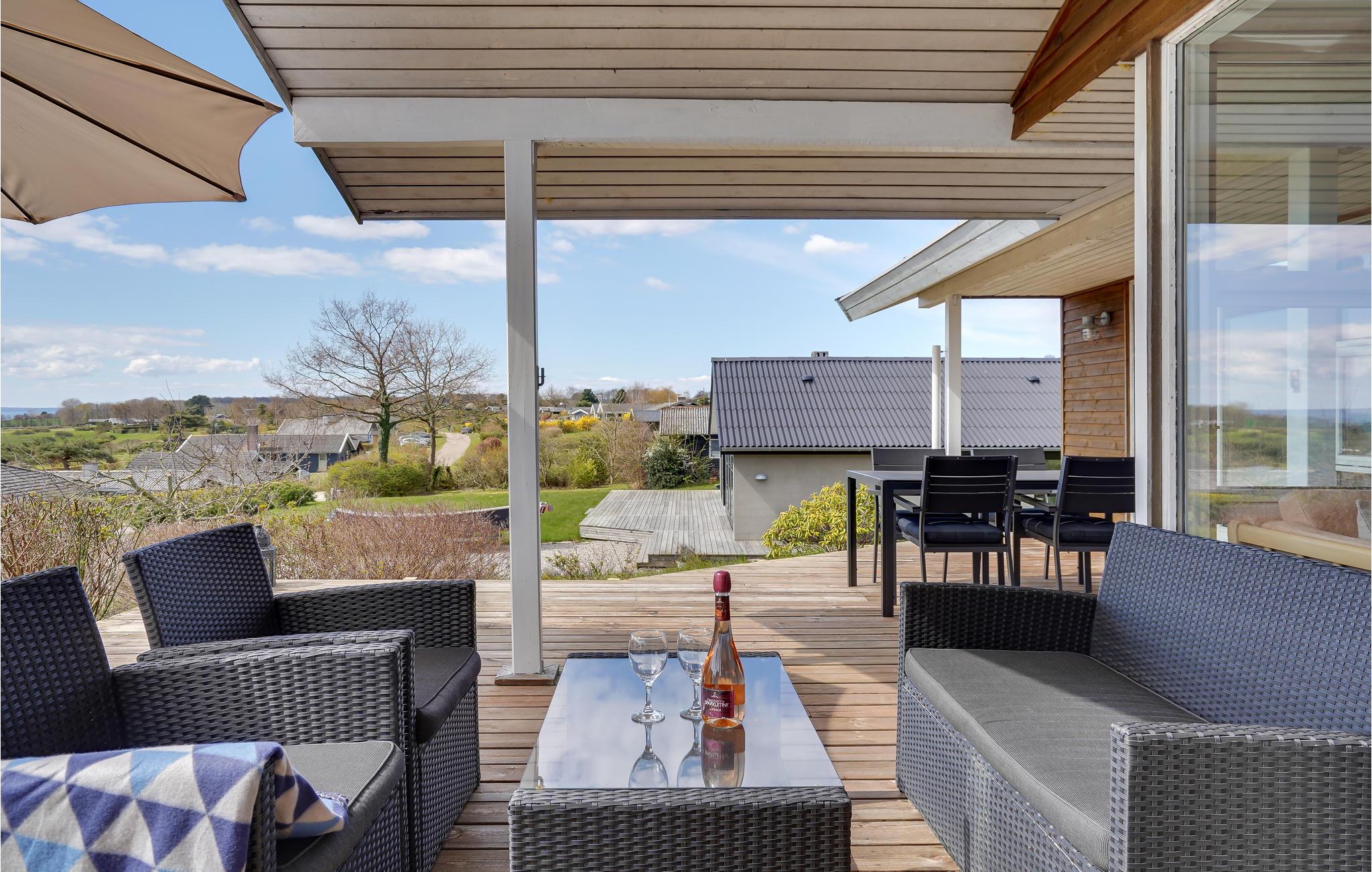 På terrassen med loungemøbler kan I slappe af med en kølig drink og nyde udsigten. De åbne og overdækkede områder gør, at I altid kan finde et hyggeligt sted at sidde med en bog eller dække op til aftensmaden.