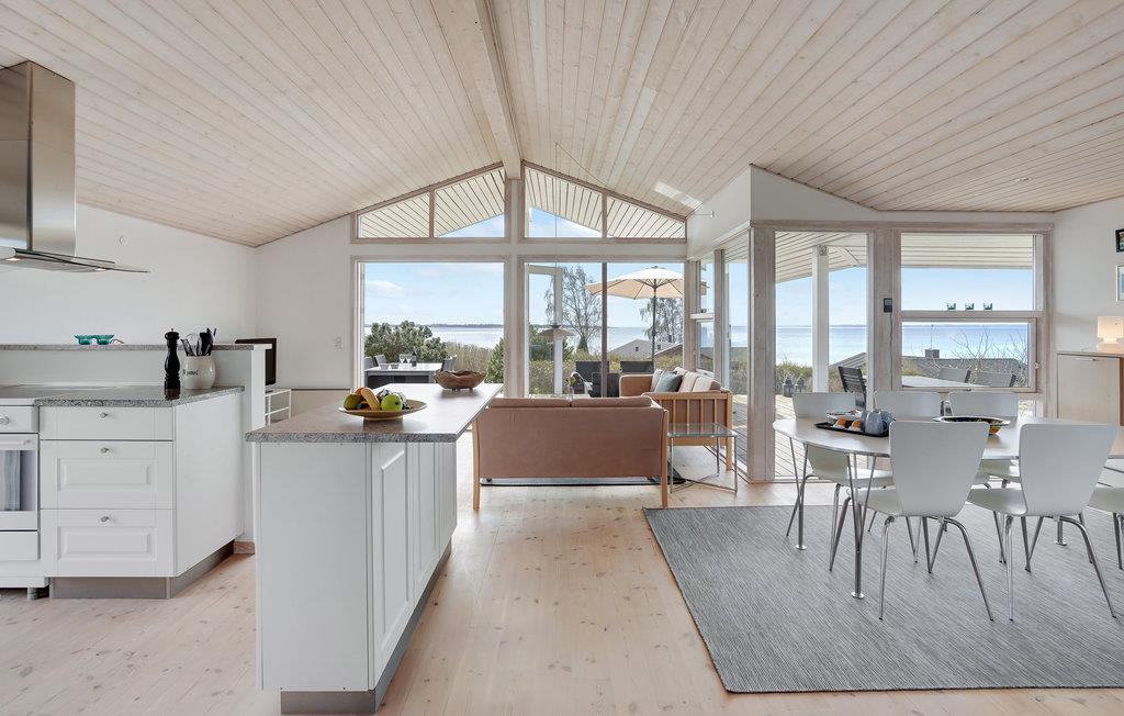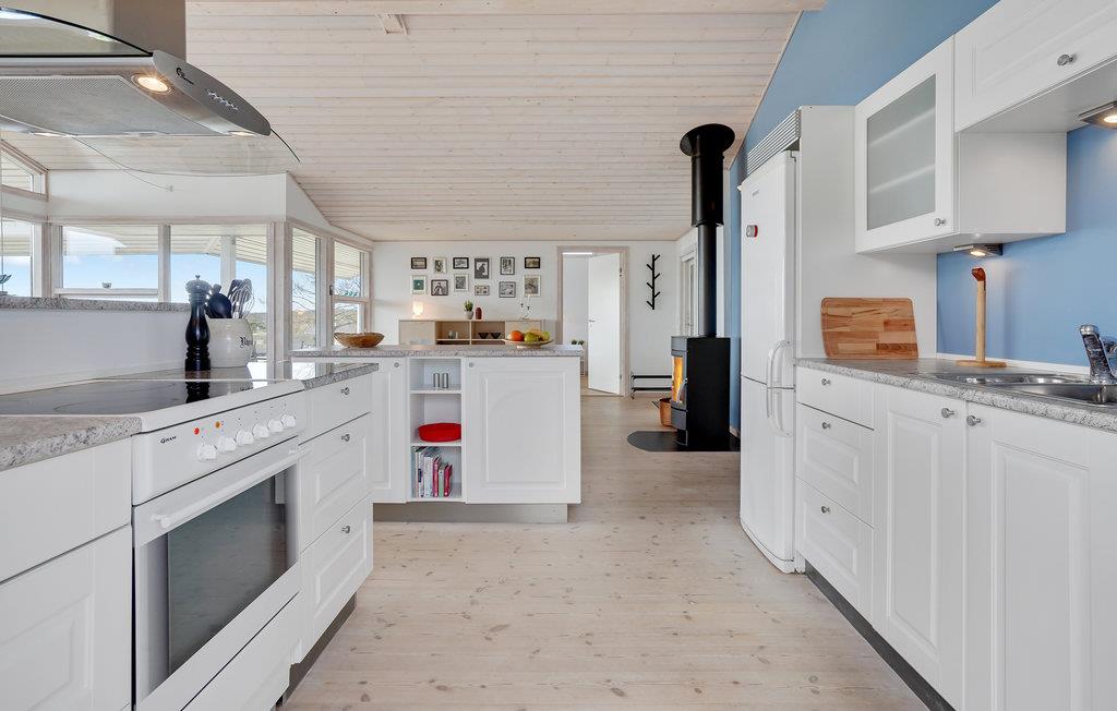 Husets centrum er den lyse opholdsstue med åbent køkken og spiseplads, hvor familien kan hygge sig sammen. Slap af i sofaen med en god film, eller lav mad til familie og venner i det veludstyrede køkken. Efter en lang gåtur spreder ilden i pejsen varme og hygge. Der er også tre soveværelser med to dobbeltsenge og en køjeseng.