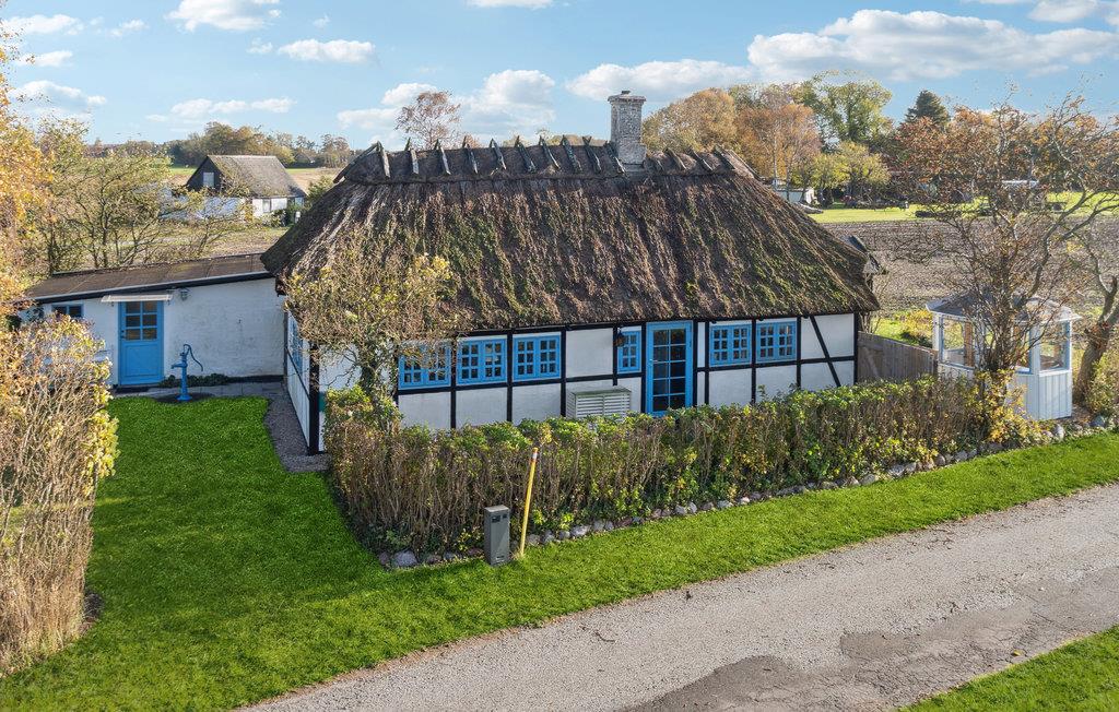 Oplev charmen i et stråtækt bindingsværkshus fra 1850 med moderne bekvemmeligheder og fredelige omgivelser.