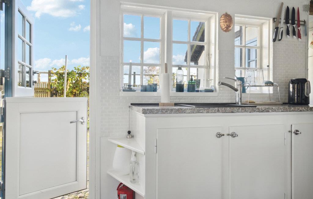 Det indbydende stråtækte feriehus er fuld af karakter og byder jer velkommen med hygge og varme. Her kan I slappe af med hele familien i smukke omgivelser og mærke skuldrene sænke sig. Mange af husets originale elementer er blevet bevaret under moderniseringen for at bevare husets ånd, og det er det ideelle valg for dem, der ønsker en særlig boligoplevelse. Nyd tiden sammen i stilfulde og hyggelige rammer og snak til sent ud på aftenen i de behagelige lænestole og i sofaen nær den varmende brændeovn. Også på terrassen kan I tilbringe dejlige stunder, og det er det ideelle sted til hyggelige grillaftener.