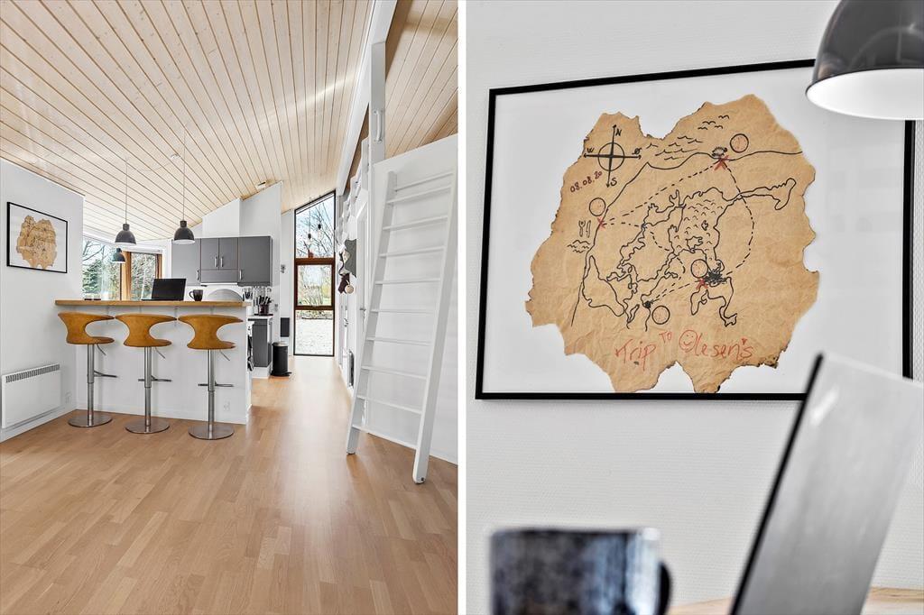 Roen sænker sig, og en rar fornemmelse breder sig i kroppen, så snart du ankommer til Klitrosevej 4 ved Hostrup Strand. Sådan gætter vi i hvert fald på, at du har det, når du først møder dette skønne sommerhus, der har en dejlig lys indretning og byder på vildmarksbad og shelter i den grønne have.