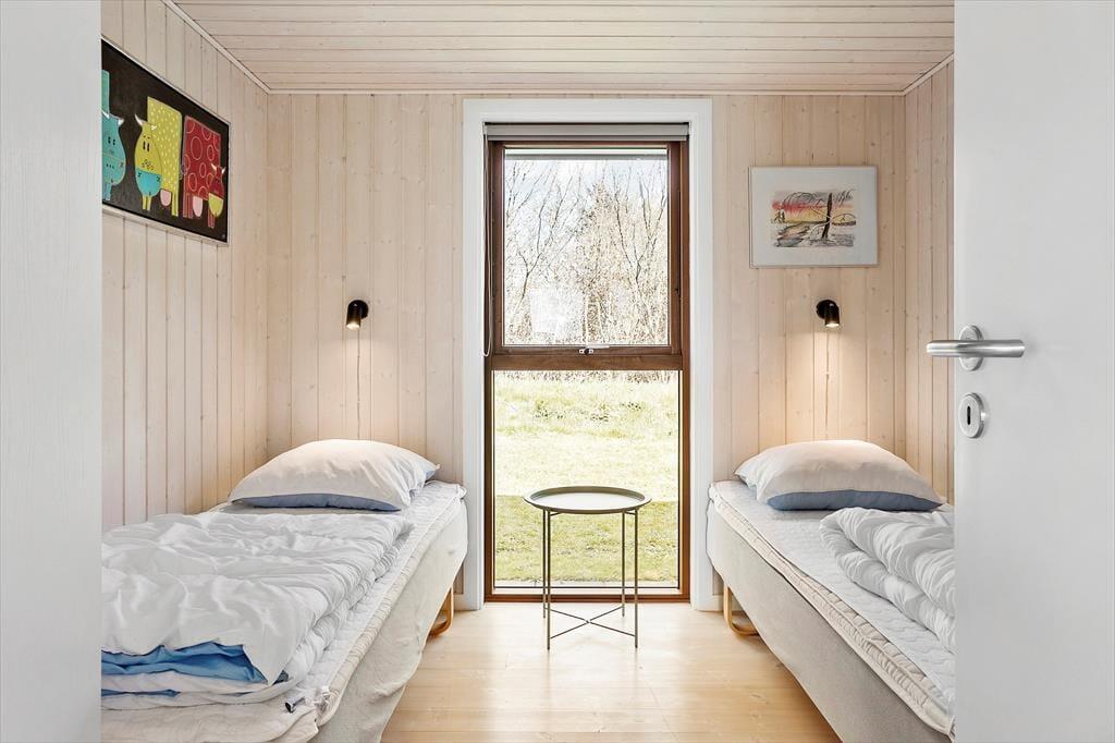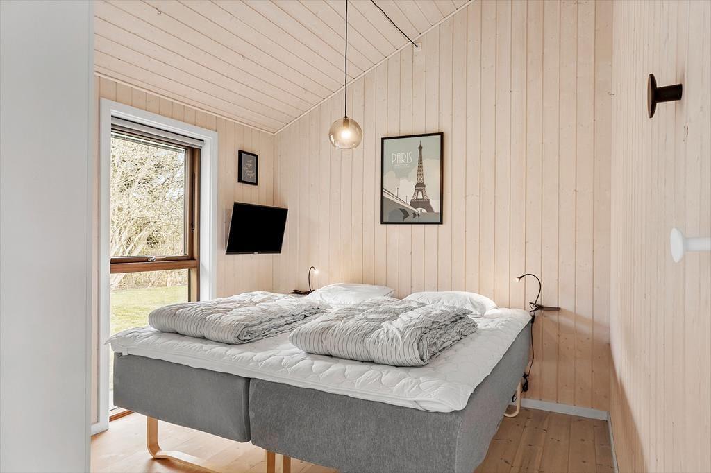 Fra sommerhuset har du en kort og dejlig gåtur gennem det kuperede, grønne område til den dejlige Hostrup Strand. I sommerhalvåret bliver der opstillet en badebro, og udsigten over Venø Bugt er betagende hele året rundt – ikke mindst ved aftentid, når solen er på vej ned og farver himlen i orange og lyserøde nuancer. Du har for øvrigt nem adgang til Gyldendal Havn, hvor der er restaurant, legeplads og en kajakklub, der lejer kajakker og SUP-boards ud. En gåtur ved Kås Hoved kan anbefales, og den velbevarede middelalderborg ved Spøttrup er kun en kort køretur væk.