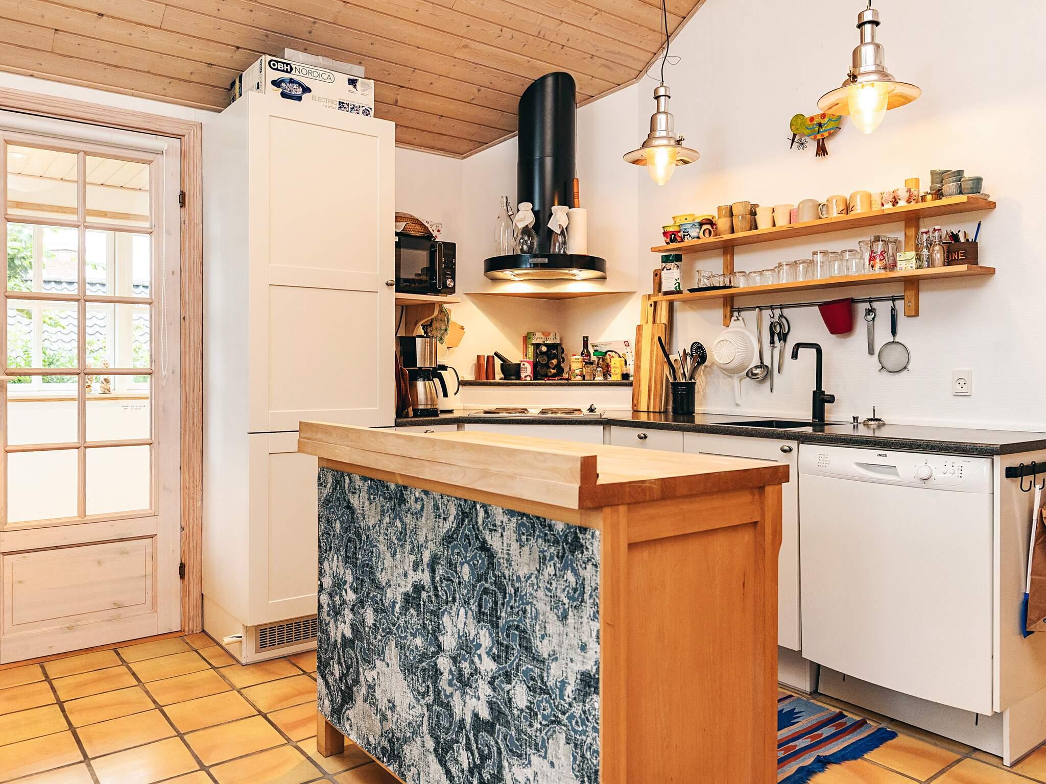 Køkkenet er fuldt udstyret, herunder et elkomfur, fryse-køleskab, mikrobølgeovn, kaffemaskine og opvaskemaskine for ekstra bekvemmelighed. Badeværelset har bruser og toilet. Desuden findes der en vaskemaskine i bryggers.