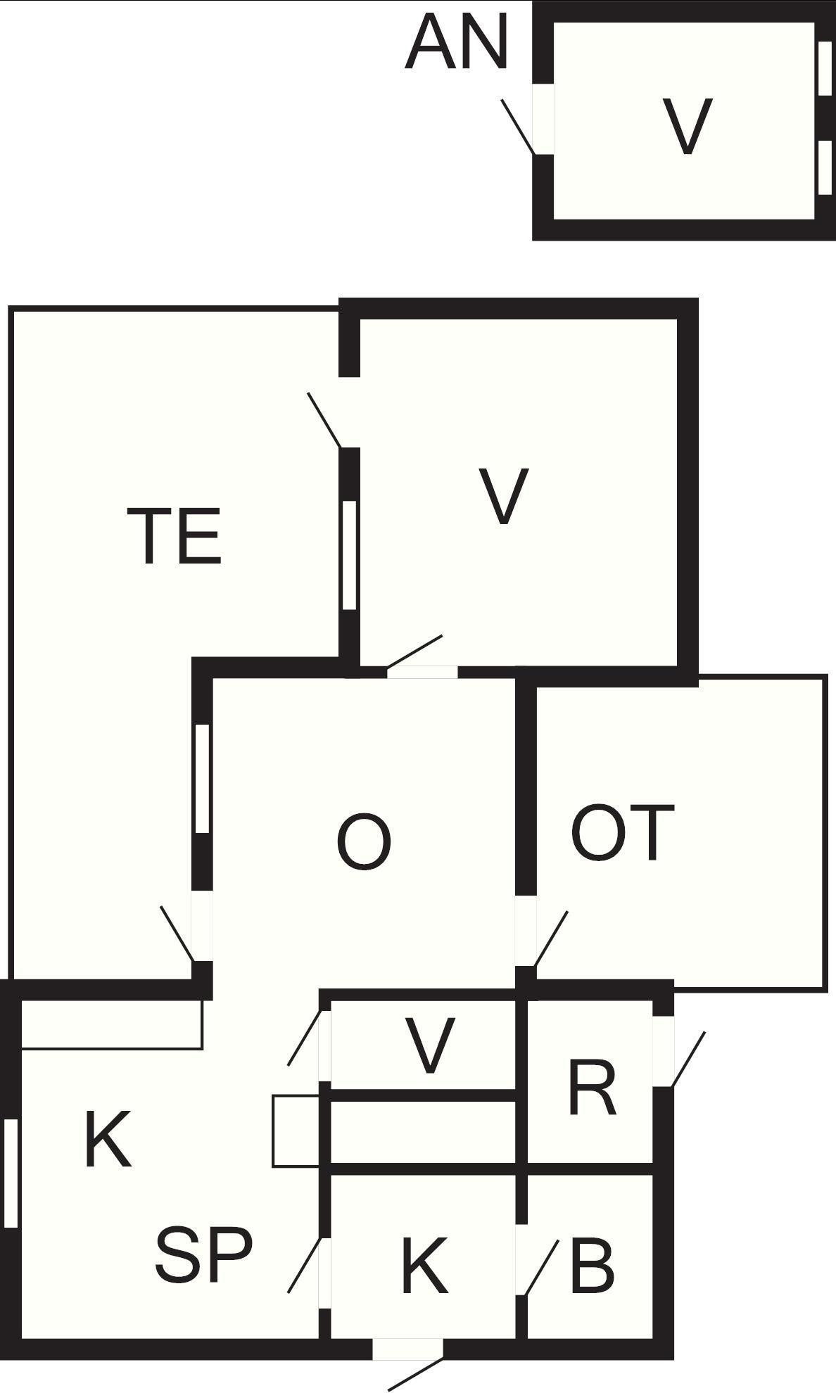 1 Opholdsstue: (1O), brændeovn, radio, tv, kabel-tv