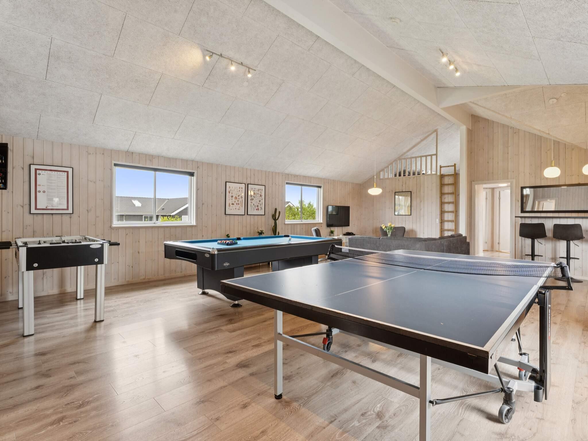 I huset er der bl.a. aktivitetsrum, hvor I kan få en god kamp om billardbordet og derefter et slag bordtennis, fodboldspil m.m. Der er i husets indretning også tænkt på de helt små feriegæster, idet huset er udstyret med barneseng og højstol og udendørs er der gynger samt sandkasse. Der findes en Playstation 4, men ingen spil. Medbring venligst jeres egne spil