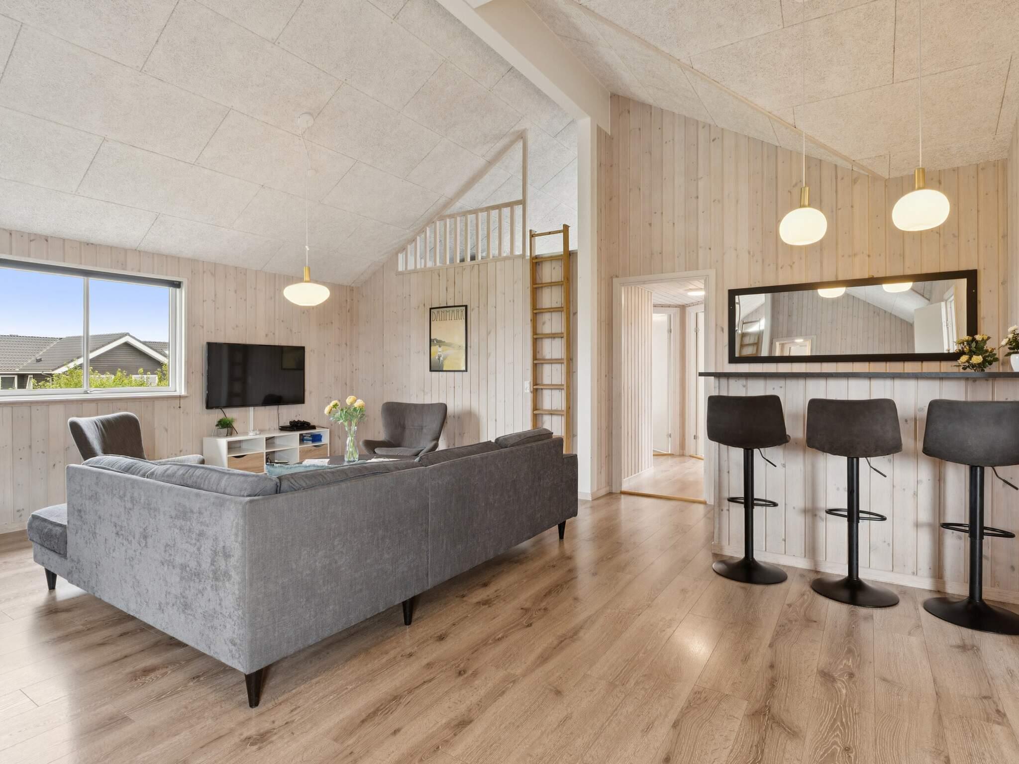 Huset er yderst rummeligt og veldimensioneret. Spise/opholdsrum er smagfuldt indrettet med stereoanlæg med cd-afspiller, fladskærms-tv, dvd-afspiller, sofaafdeling og brændeovn.