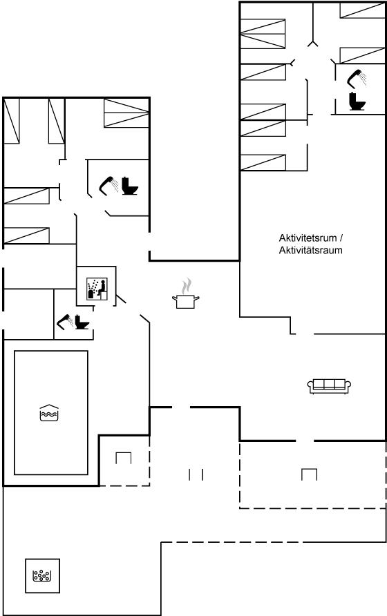 Sommerhuset er indrettet med 7 gode soveværelser fordelt på to soveafdelinger. De sidste 4 sovepladser findes på sommerhusets hems, hvor særligt de yngre gæster nyder at overnatte. I hver af de to soveafdelinger findes der ét badeværelse – det sidste badeværelse ligger i forbindelse med pool-afdelingen.