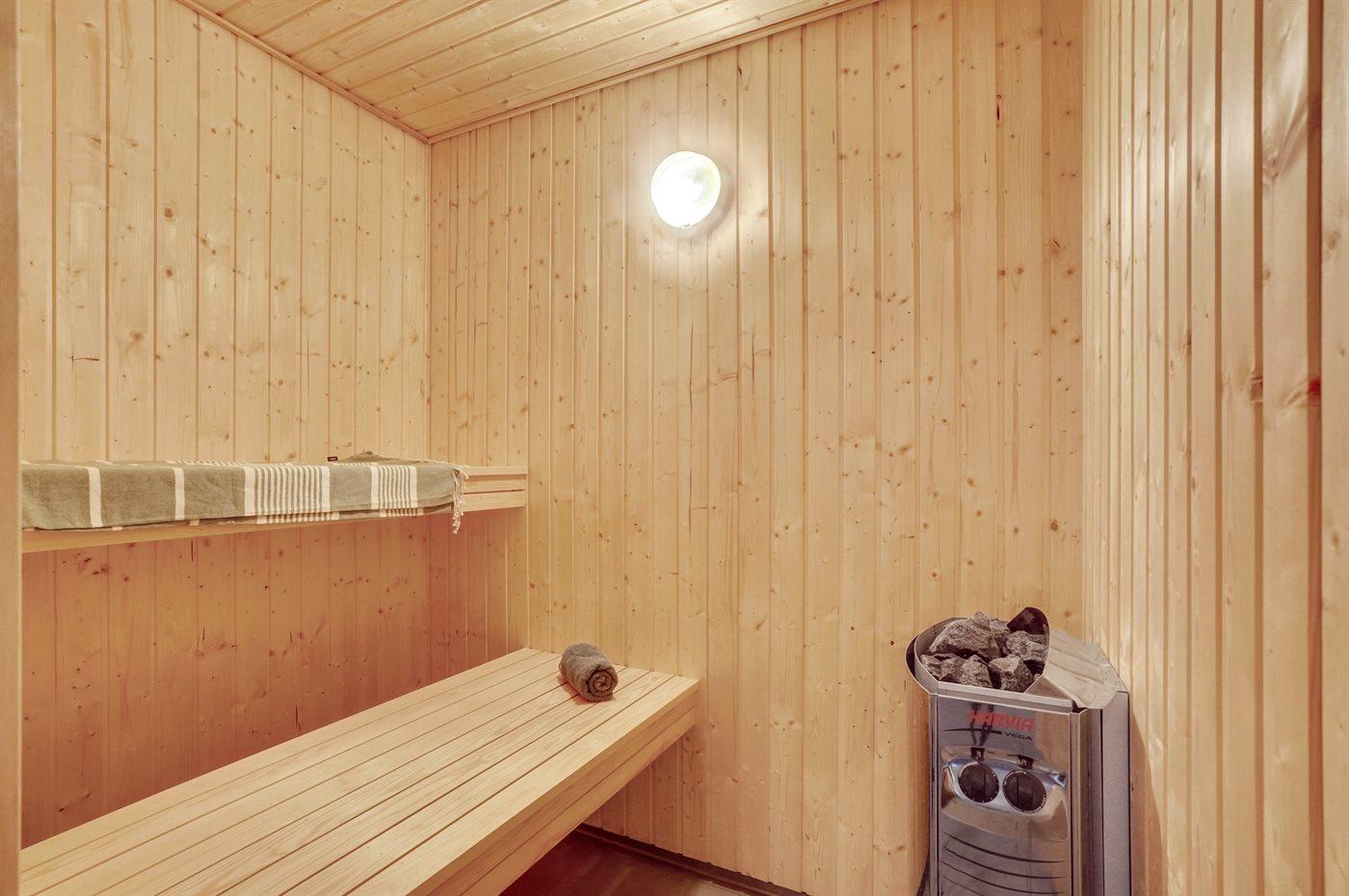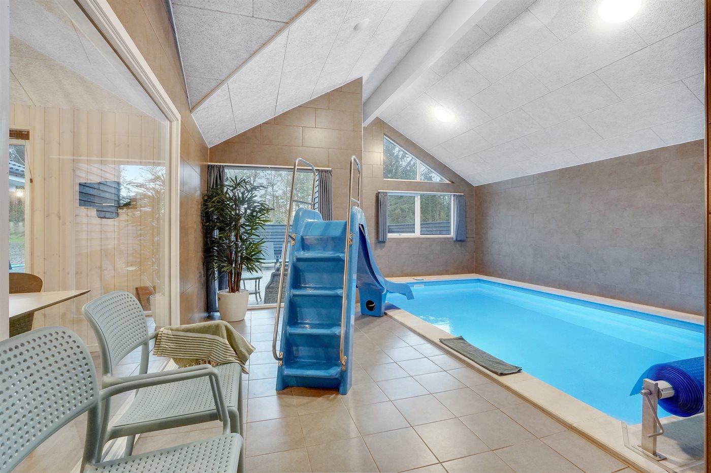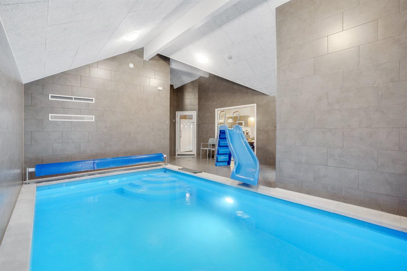 I sommerhusets store pool med dertilhørende vandrutsjebane er der gode muligheder for at få brændt noget energi af - omvendt er der også mulighed for afslapning og varme i husets sauna.