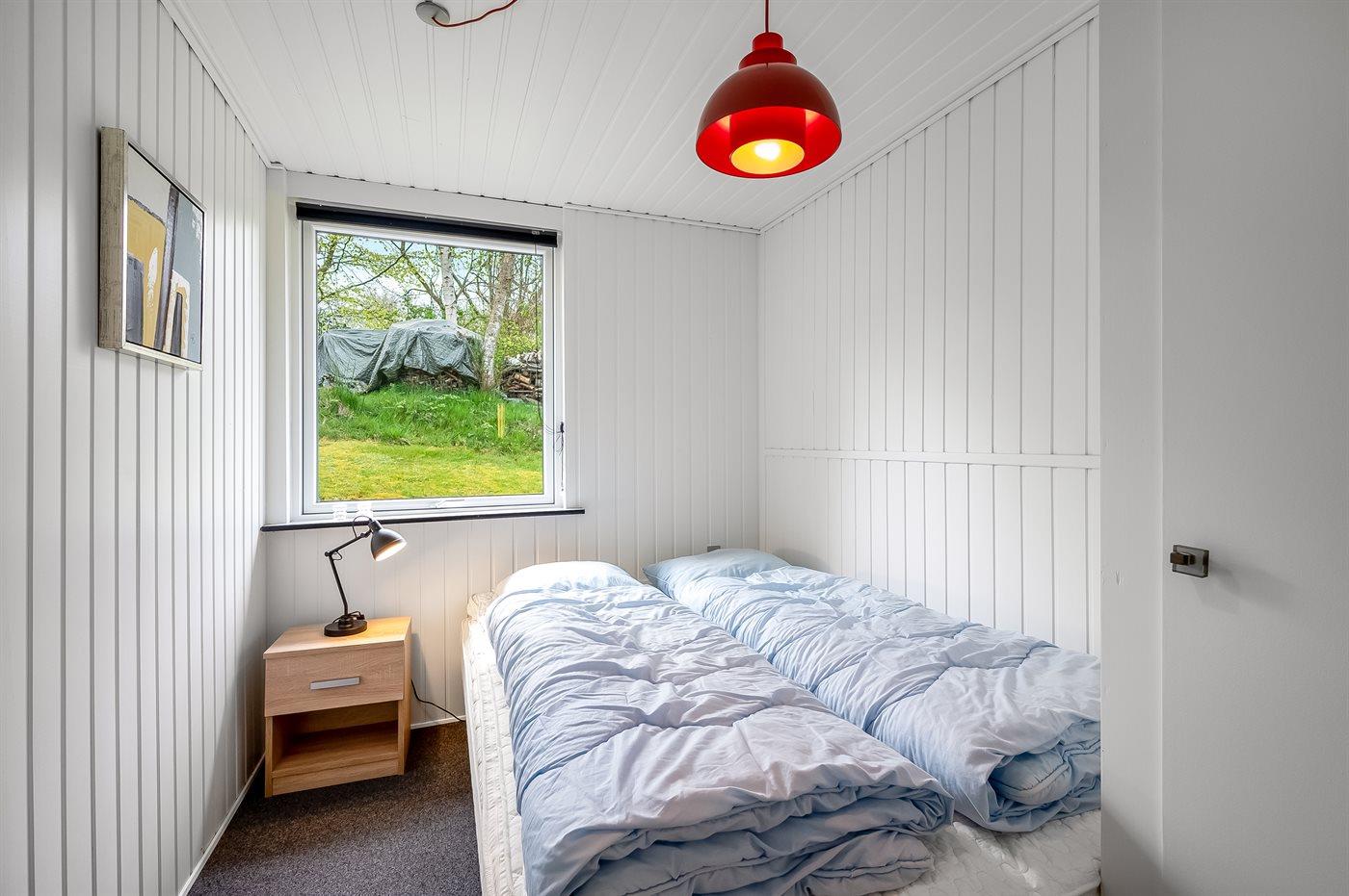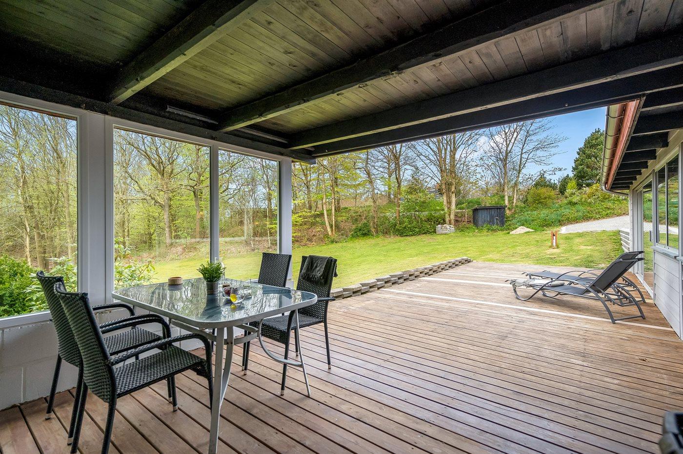 Ferieboligen er beliggende på en 1485 m² stor grund i skov/plantage. Der er 300 m til fjorden. Nærmeste forretning er beliggende i en afstand af 3000 m. Til ferieboligen hører åbent terrasseareal. Desuden er der overdækket terrasse. Parkering ved ferieboligen.