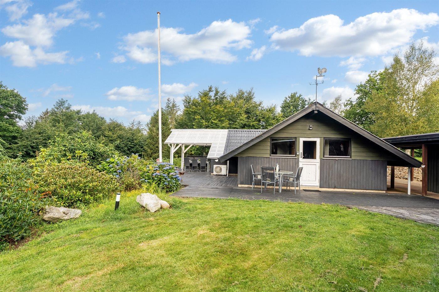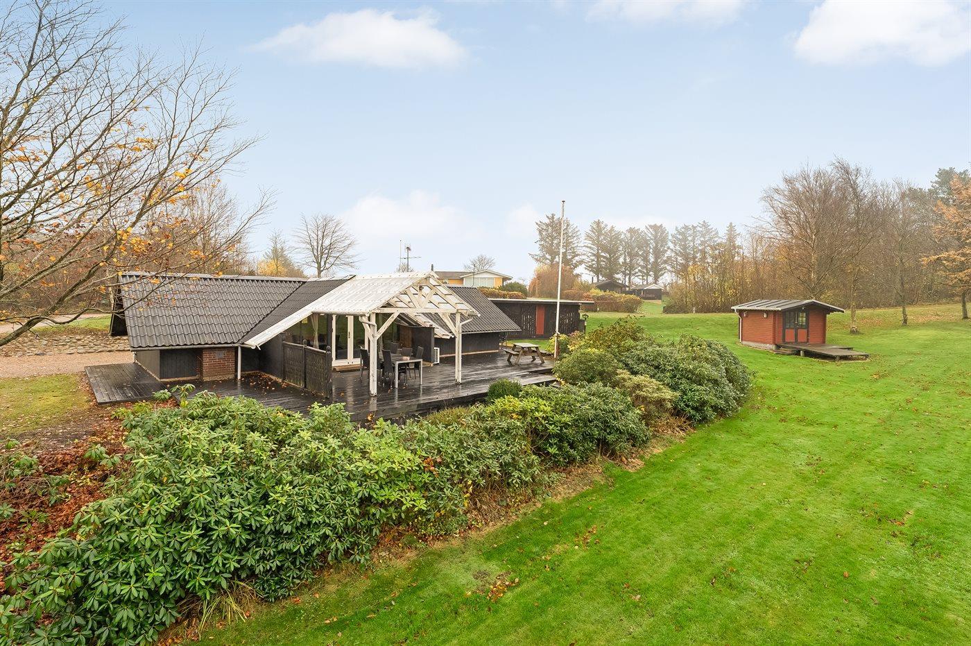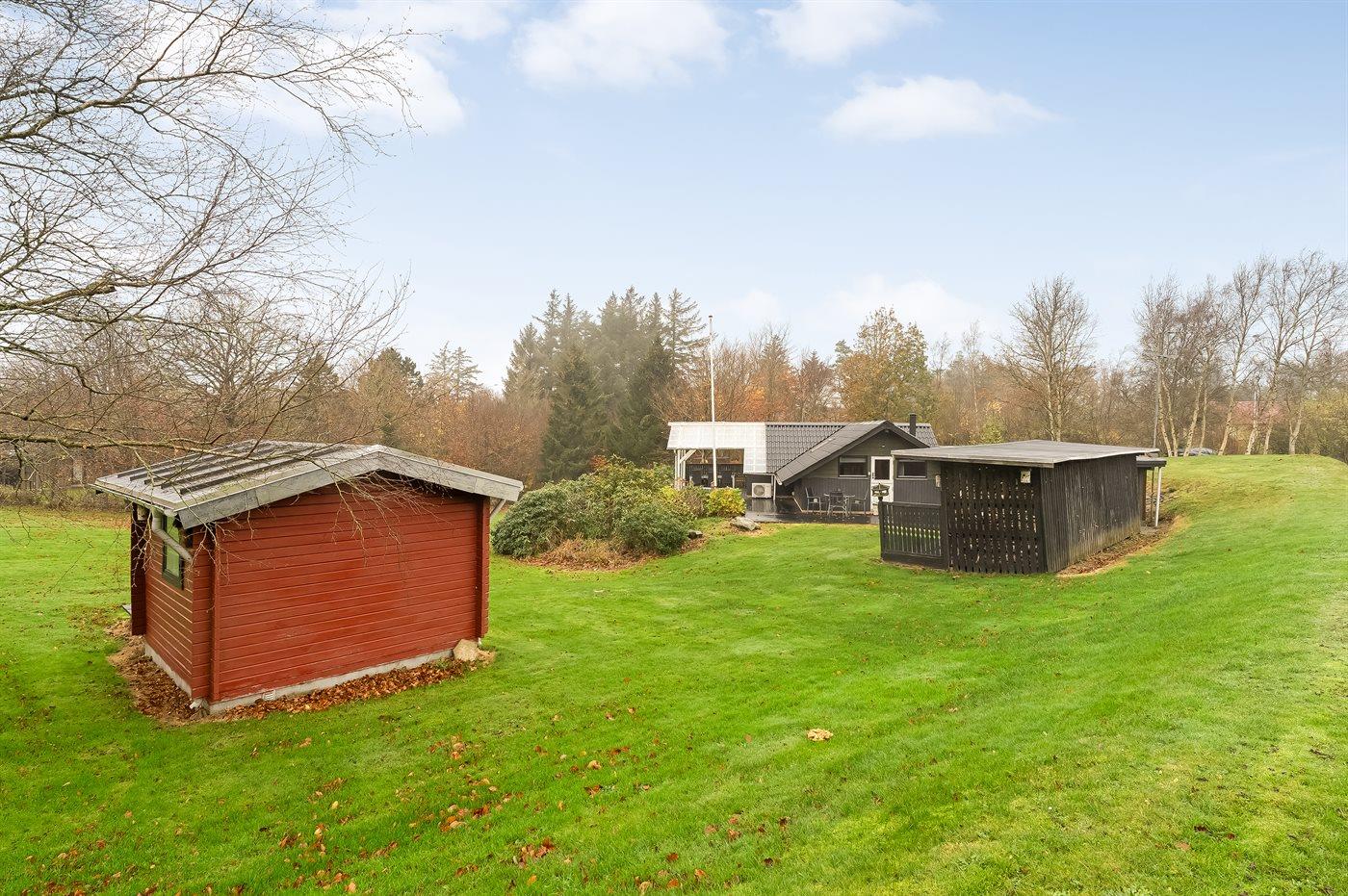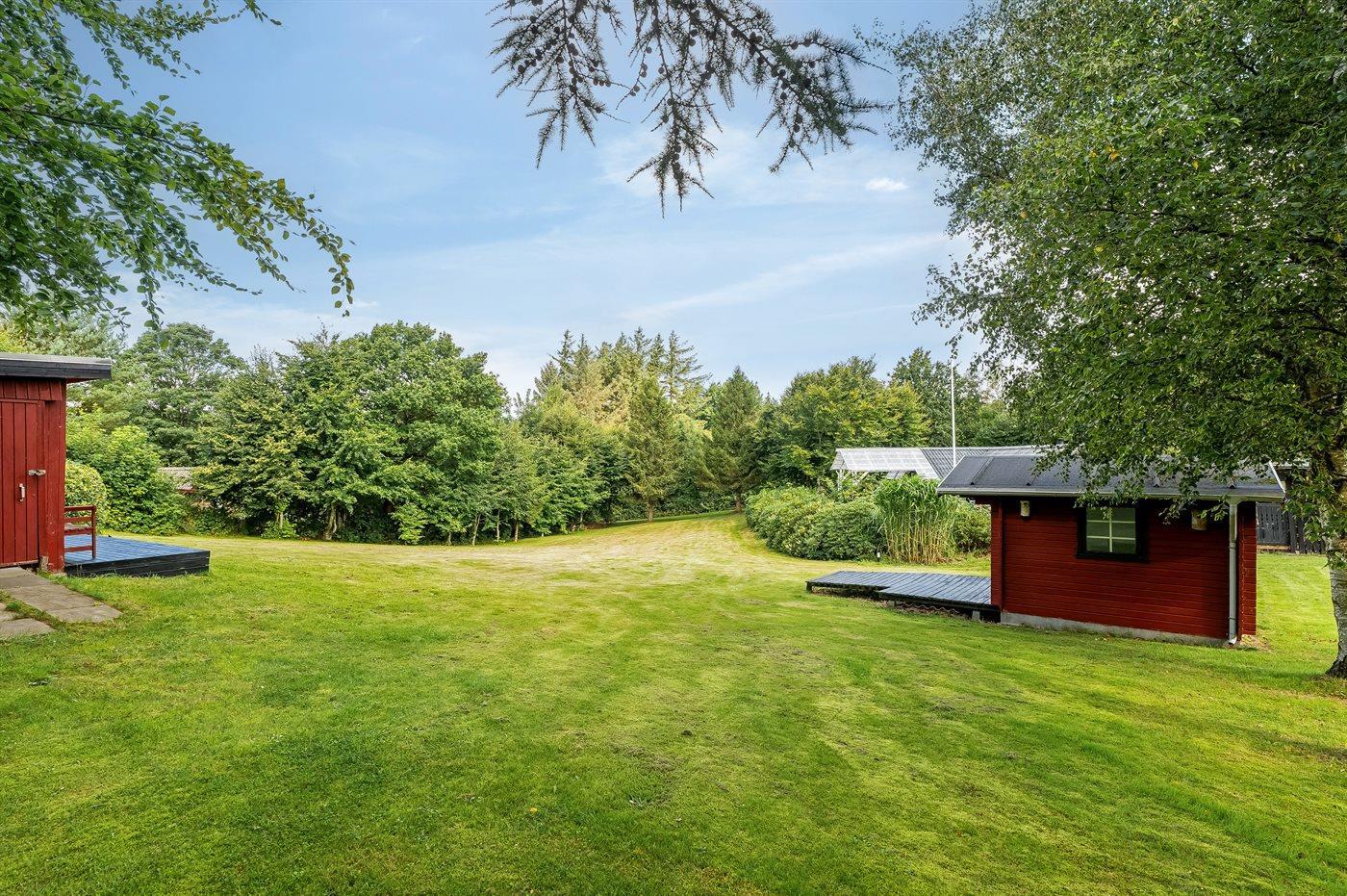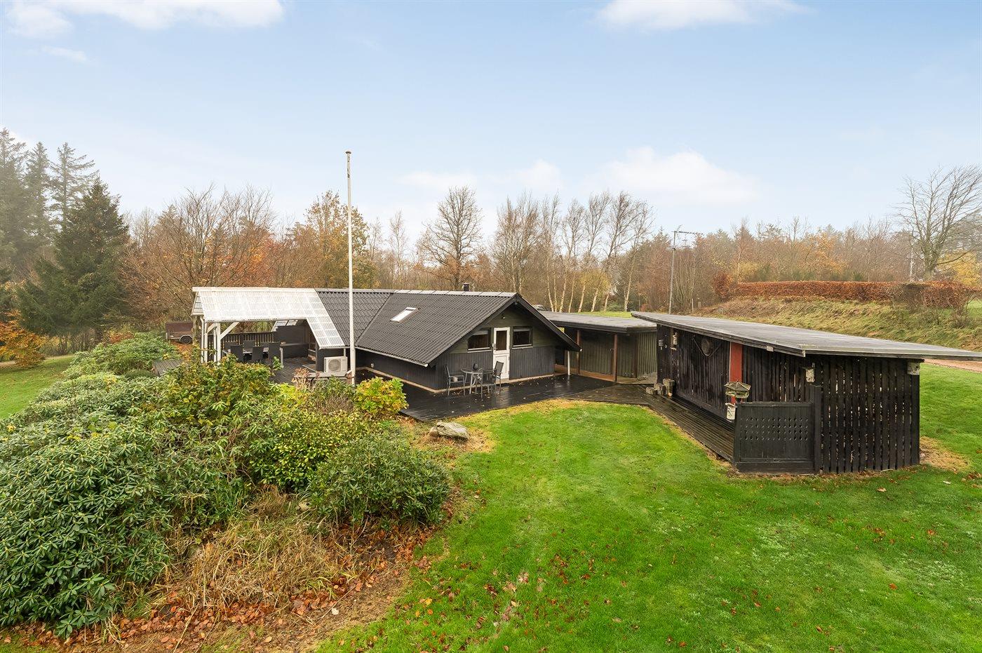 Ferieboligen er beliggende på en 2581 m² stor naturgrund. Der er 25000 m til havet. Der er 500 m til fjorden. Der er en badebro i nærheden. Nærmeste forretning er beliggende i en afstand af 4500 m. Der er en golfbane i en afstand af 12000 m. Til ferieboligen hører åbent terrasseareal. Desuden er der overdækket terrasse. Der er redskabsrum. Bålsted. Der er carport til rådighed. Parkering ved ferieboligen.