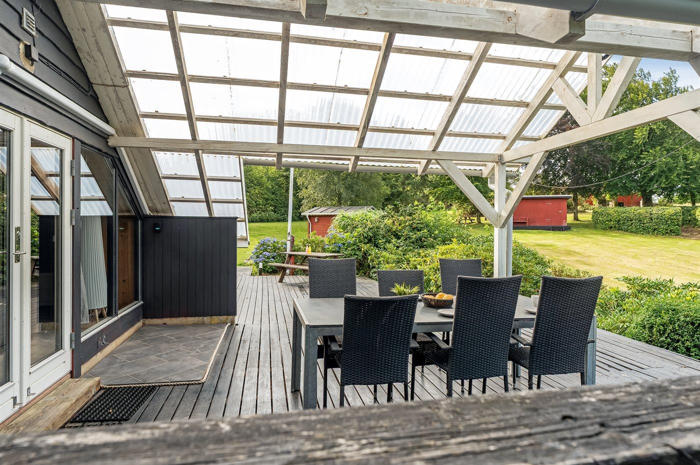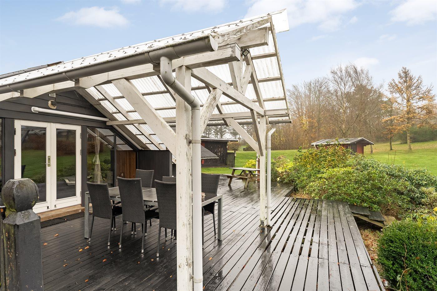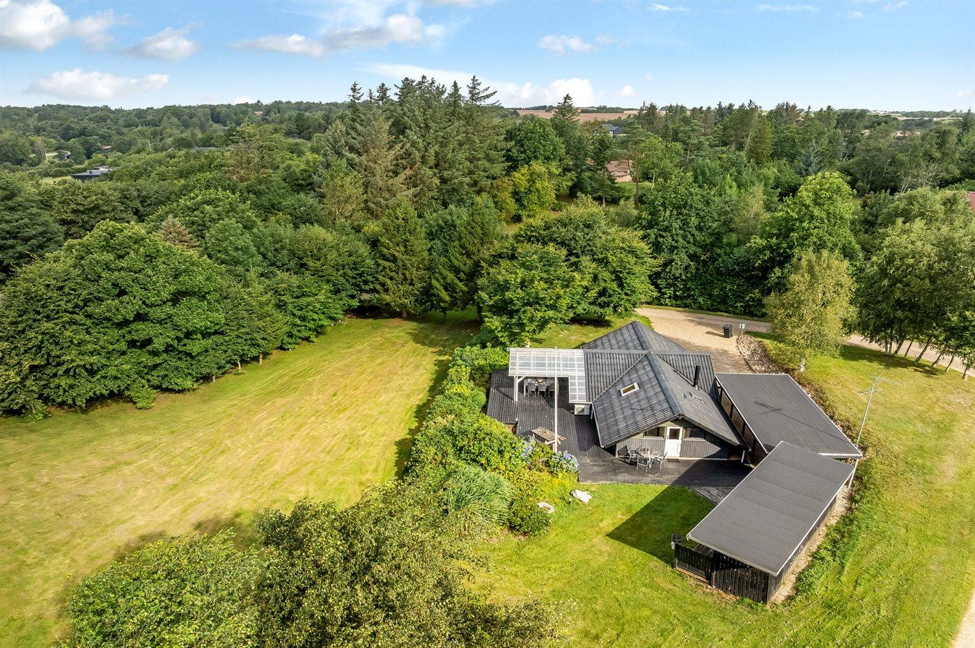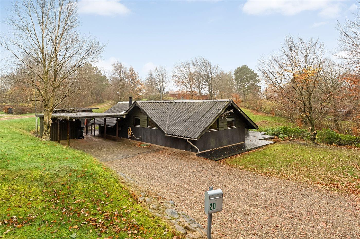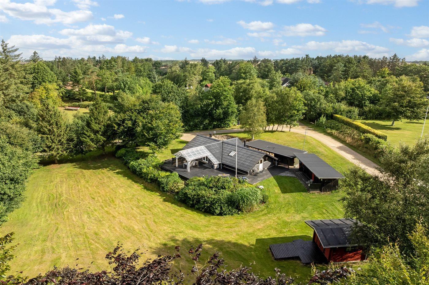 Ferieboligen er beliggende på en 2581 m² stor naturgrund. Der er 25000 m til havet. Der er 500 m til fjorden. Der er en badebro i nærheden. Nærmeste forretning er beliggende i en afstand af 4500 m. Der er en golfbane i en afstand af 12000 m. Til ferieboligen hører åbent terrasseareal. Desuden er der overdækket terrasse. Der er redskabsrum. Bålsted. Der er carport til rådighed. Parkering ved ferieboligen.