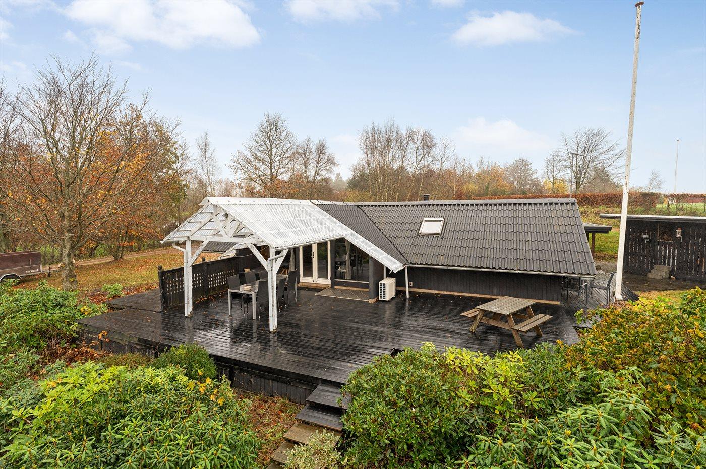 Huset er renoveret i 2024, med respekt for den originale bygning. Fra husets overdækkede terrasse har du udsigt over den store grund, hvor der er rig mulighed for boldspil og leg.