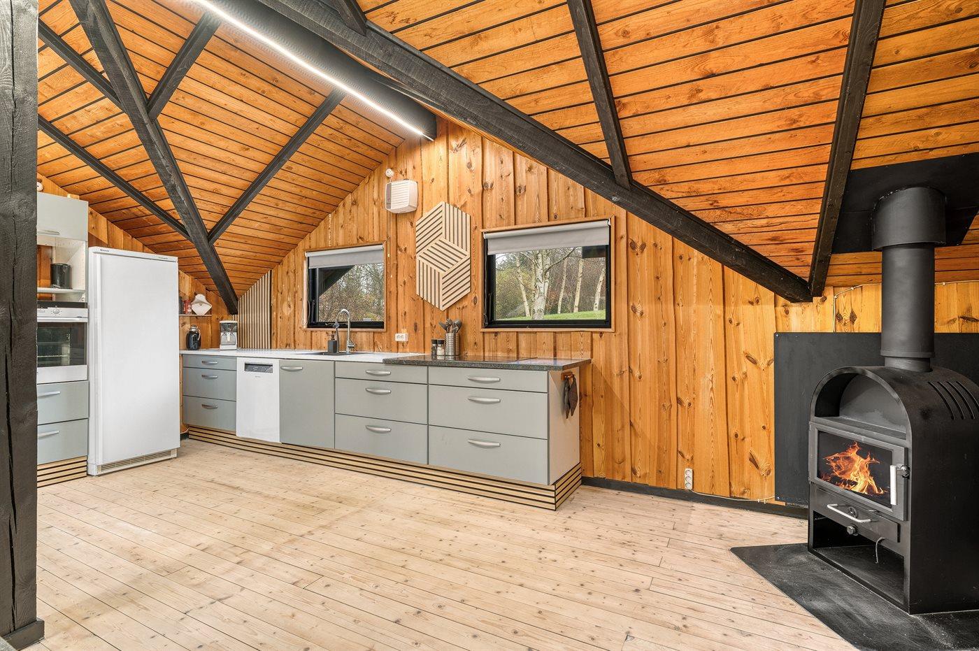 Køkkenet er udstyret med 1 køleskab. Der er 4 induktionskogeplader, varmluftovn, mikrobølgeovn samt opvaskemaskine.