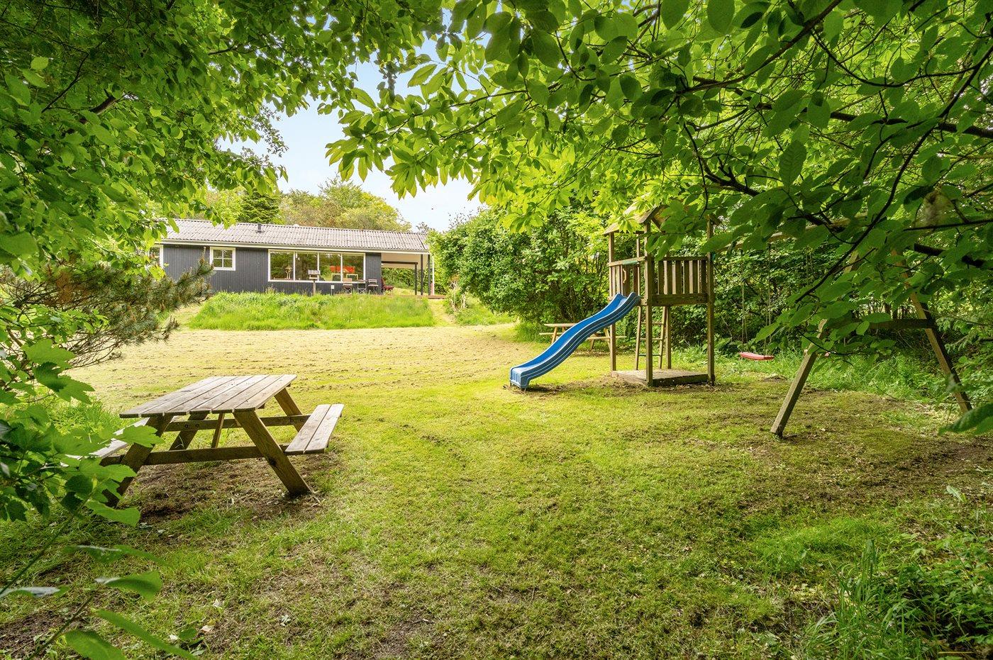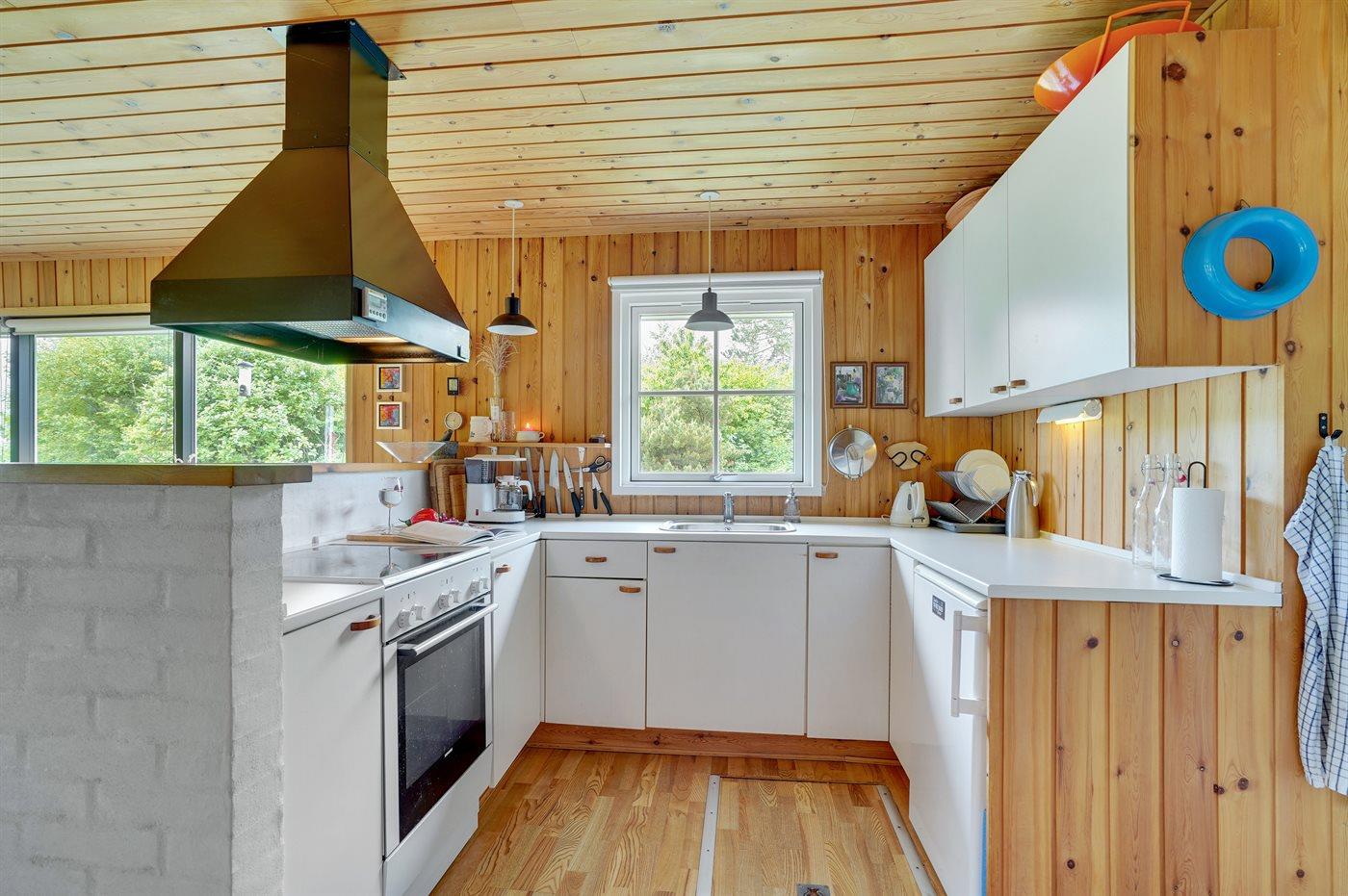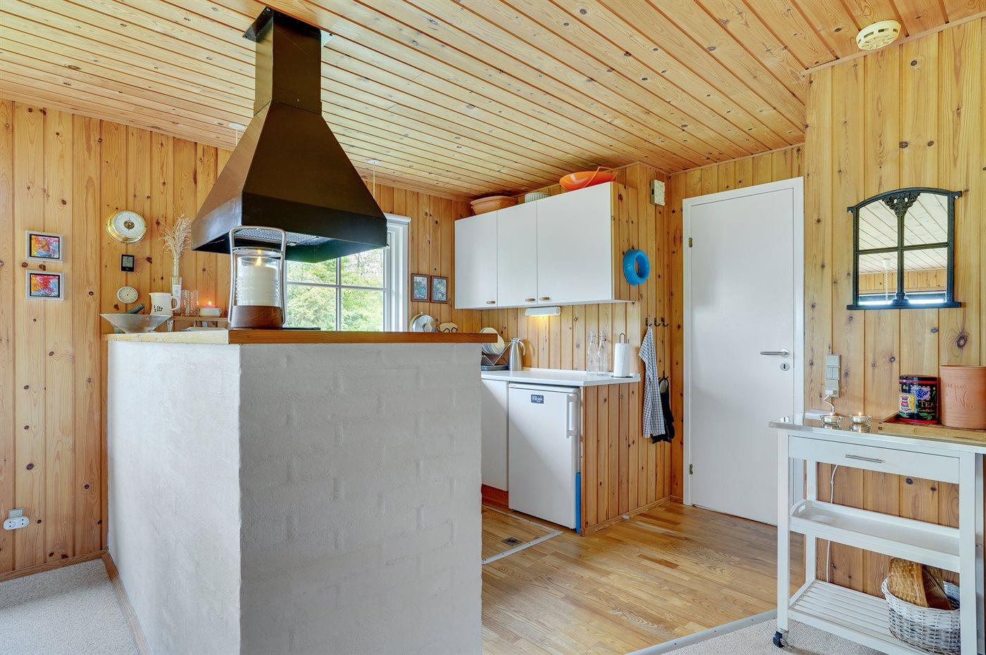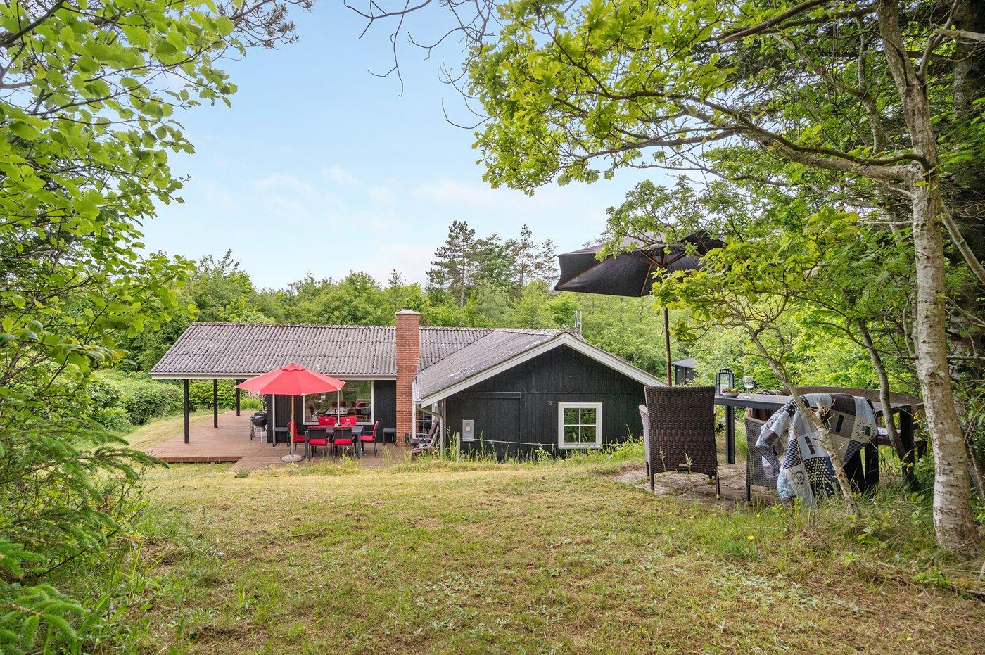 Ferieboligen er beliggende på en 2608 m² stor grund i skov/plantage. Der er 300 m til fjorden. Nærmeste forretning er beliggende i en afstand af 3500 m. Desuden er der 15 m² overdækket terrasse. Til ferieboligen hører åbent terrasseareal. Desuden er der overdækket terrasse. Parkering ved ferieboligen.
