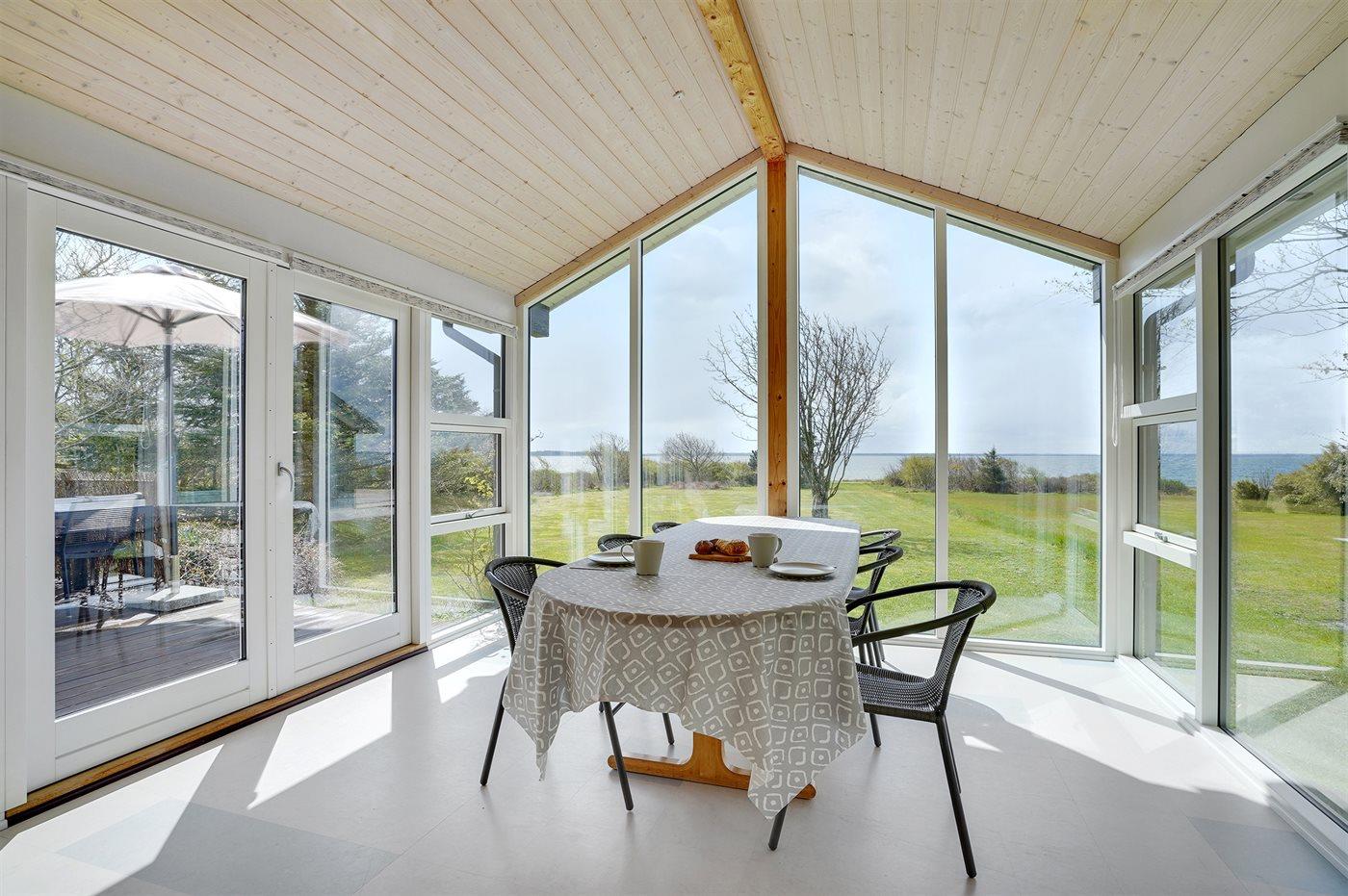 Sommerhus ved fjorden med smuk udsigt, brændeovn og stor have i naturskønne omgivelser nær Spøttrup Borg.