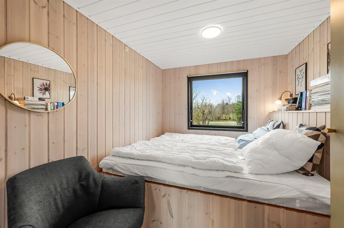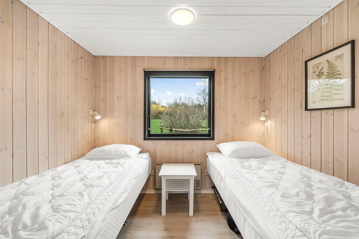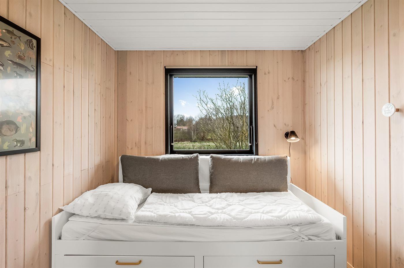 Der er i alt 3 soveværelser. Sovepladserne fordeler sig på: 2 sovepladser i dobbeltseng. 2 sovepladser i enkeltsenge. 2 sovepladser i sovesofa (dobbelt). Derudover er der 1 stk. barneseng.
