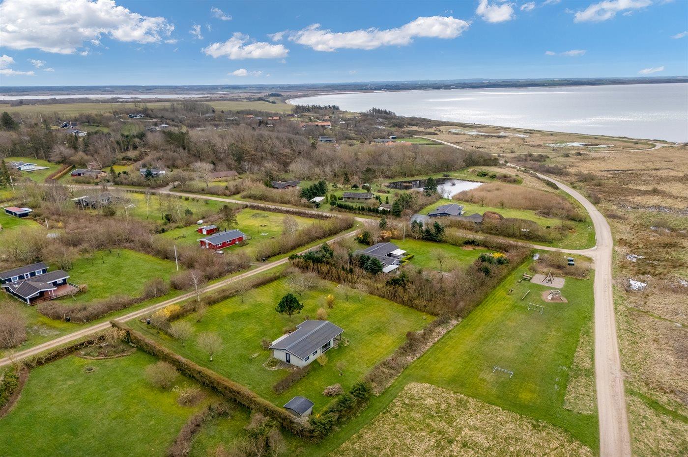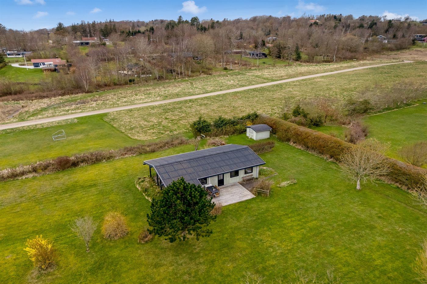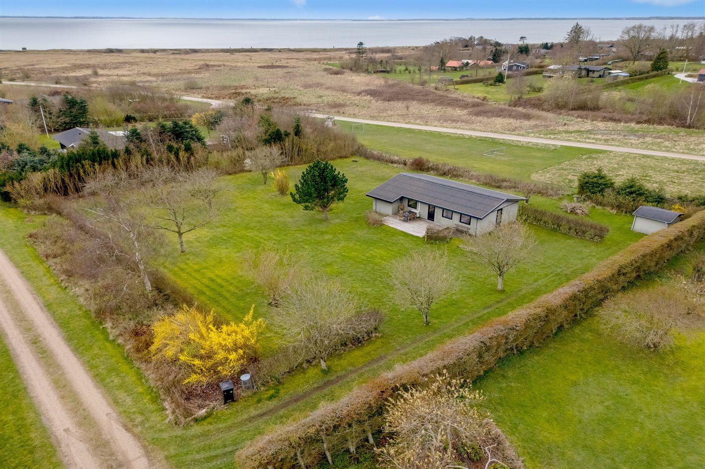 Ferieboligen er beliggende på en 2500 m² stor havegrund. Der er 1300 m til fjorden. Nærmeste forretning er beliggende i en afstand af 3000 m. Til ferieboligen hører åbent terrasseareal. Desuden er der overdækket terrasse. Der er redskabsrum. Bålsted. Parkering ved ferieboligen.